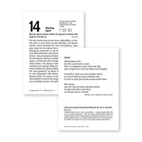 Mit integriertem Aufsteller zum Hinstellen und zusätzlichem Schmuckblatt zum Aufhängen kann der Große Abreißkalender vielfältig eingesetzt werden. Seine größere Schrift macht ihn dabei besonders gut lesbar. Der großzügige Satz und die übersichtliche Aufteilung tun Augen und Seele gut.