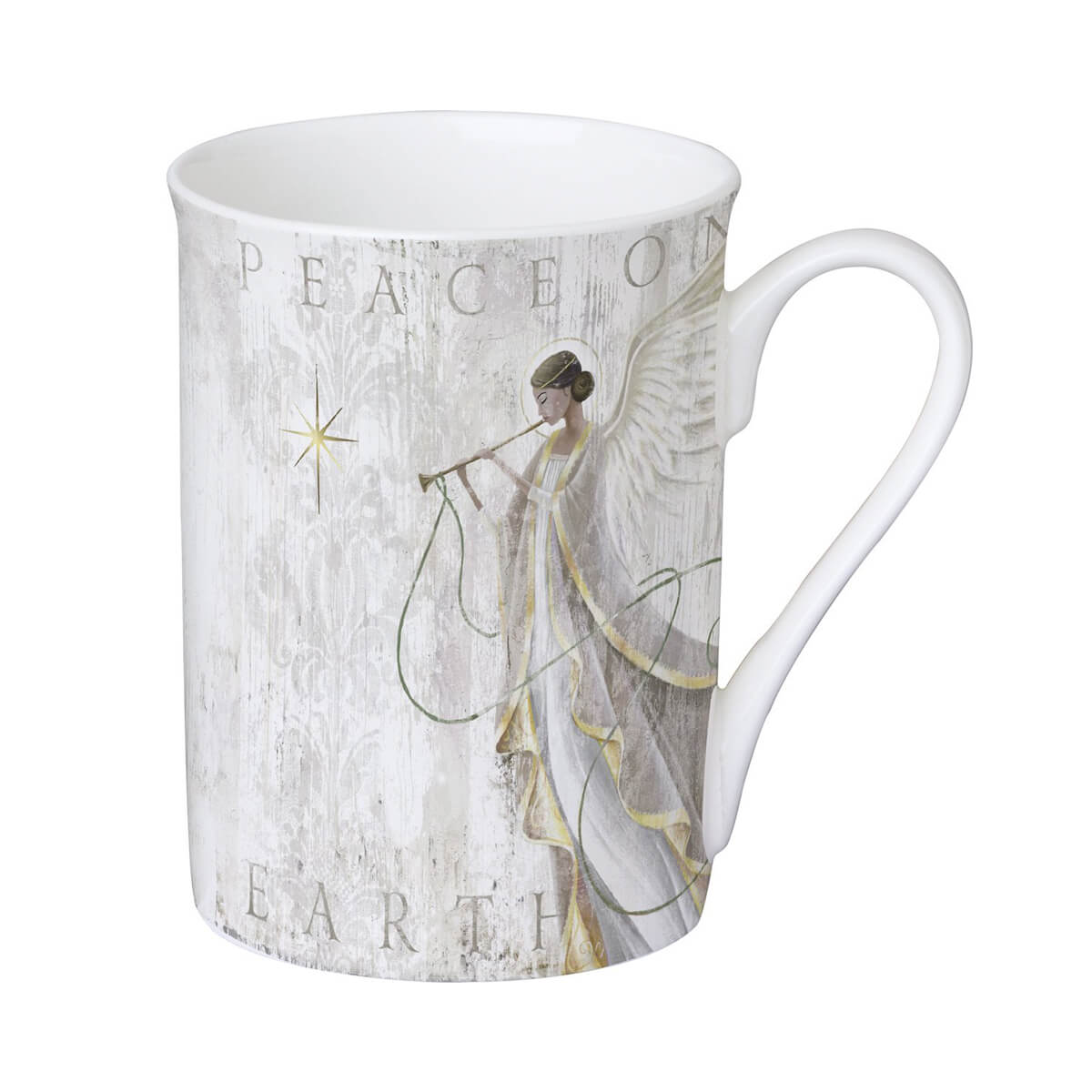 Porzellantasse "Peace on Earth" in schlanker, eleganter Form mit Weihnachtsmotiv.