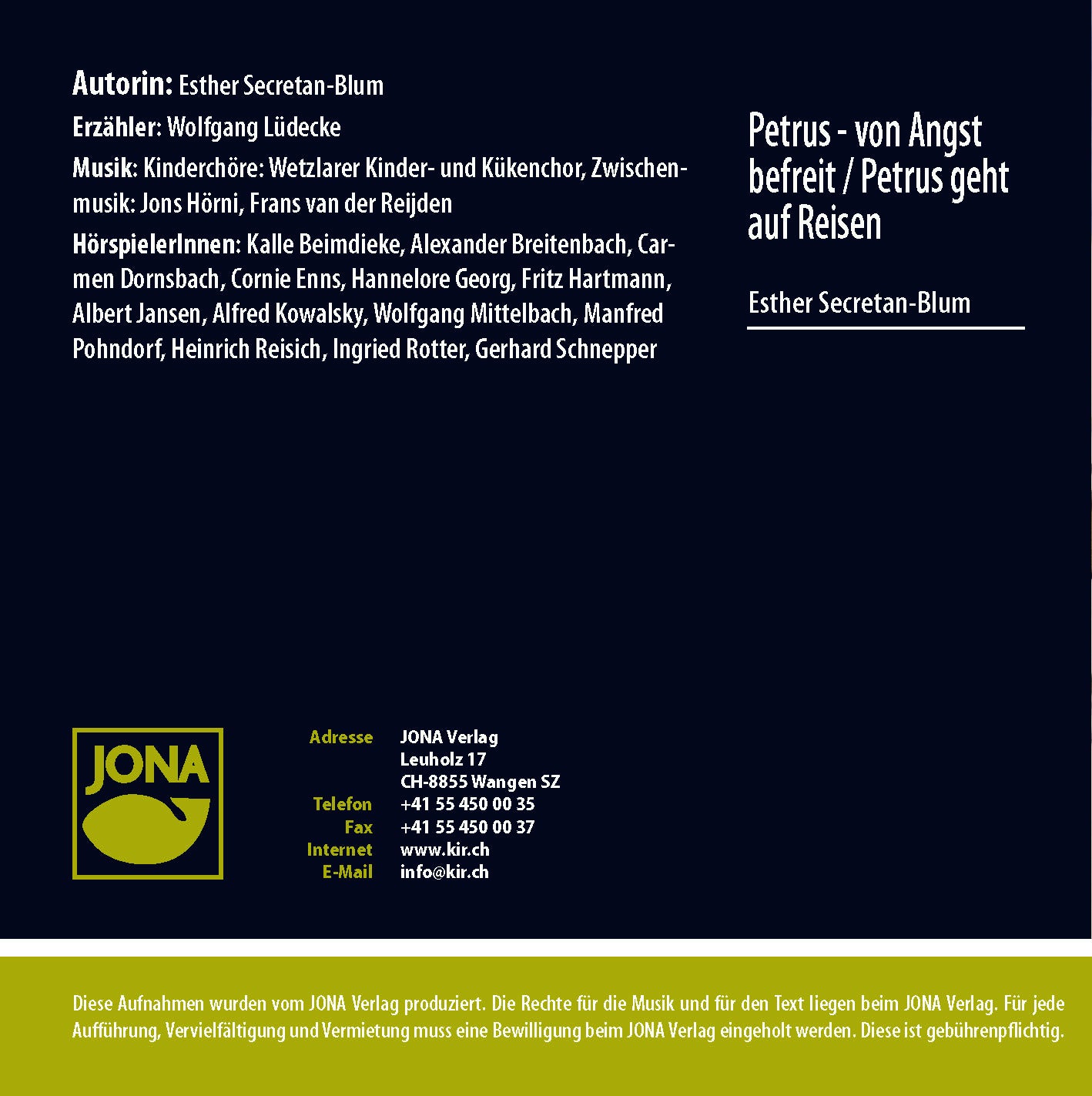 Nach kläglichem Versagen erfährt Petrus Vergebung. Seine Angst verwandelt sich in Vertrauen. Tatkräftig und mutig setzt er sich für die Verbreitung des Evangeliums ein und erzählt seinem Schreiber Silvanus aus seinem abenteuerlichen Leben mit Jesus.