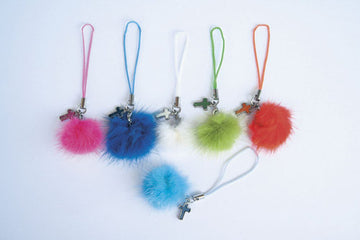 "Phone Strap mit Puschel - Kreuz, Einfach eine Schlaufe durch die Öse fädeln und man hat sein individuelles Handy. Hinweis: Bitte entnehmen Sie die Ausführung und Farbe der Artikelbezeichnung neben dem Bild.)"