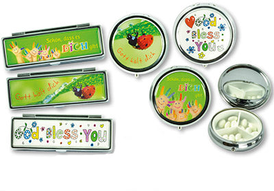 - Pillendosen mit dreigeteiltem Kunststoff-Einsatz, festem Verschluss mit