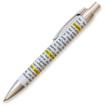 Kugelschreiber im 2er Set mit Rundumdruck . Die Textpartien sind zum Teil wie mit einem Textmarker gelb hervorgehoben, Minenfarbe: schwarz