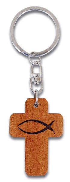 Schlüsselanhänger Holzkreuz Fischsymbol