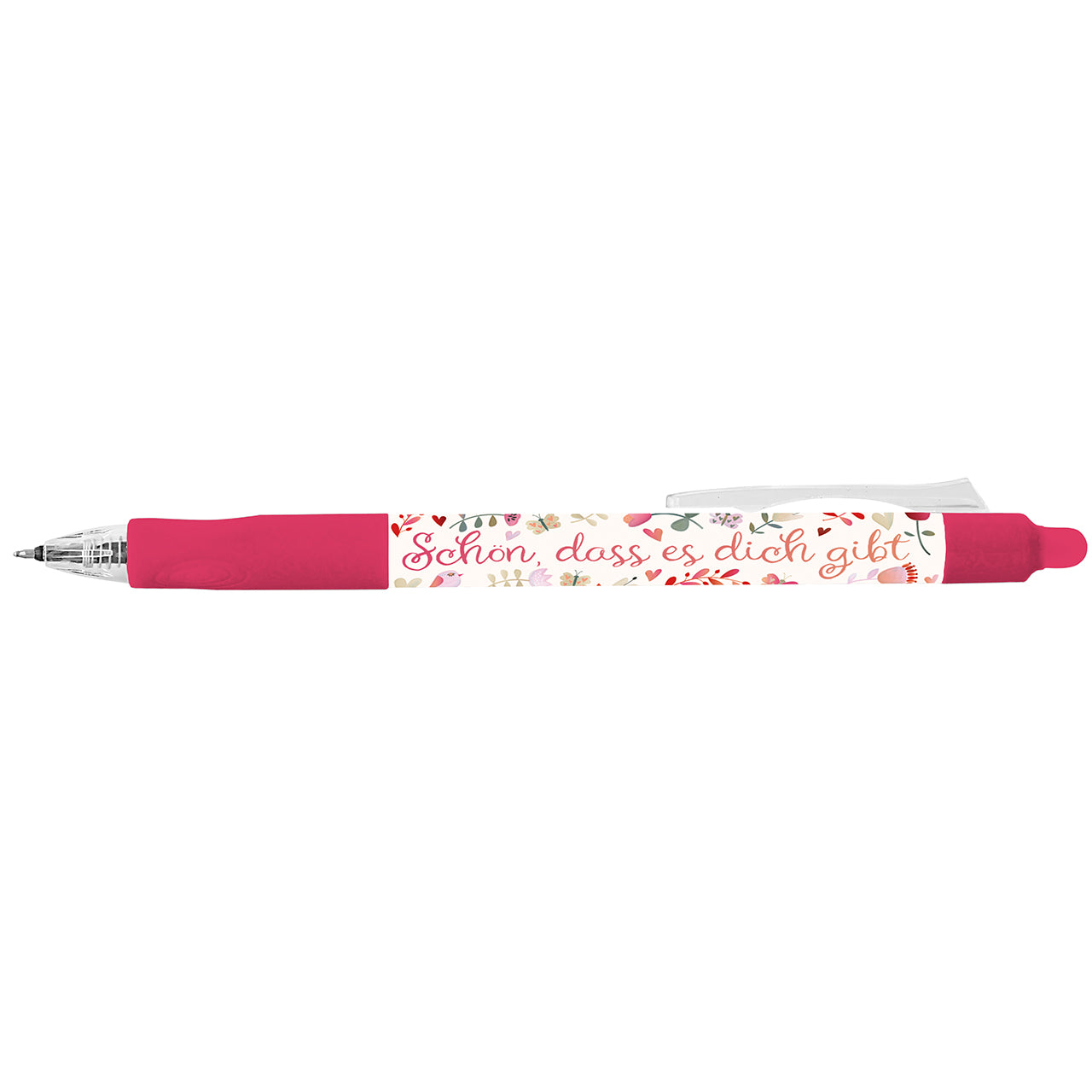 Radierbarer Gelschreiber mit "blumig"-bedrucktem Kunststoffkorpus