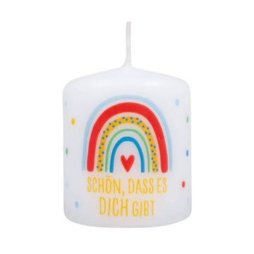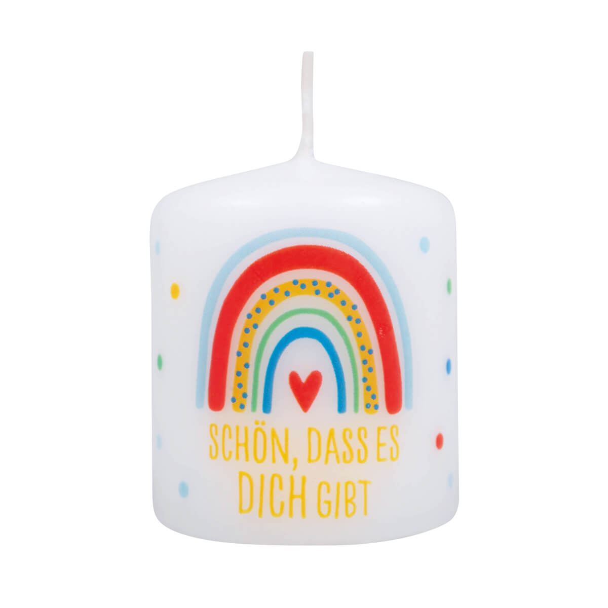 Hübsche kleine Tischkerze "Regenbogen", schöne Deko-Idee zur Taufe, Geburtstag, Schulanfang etc.