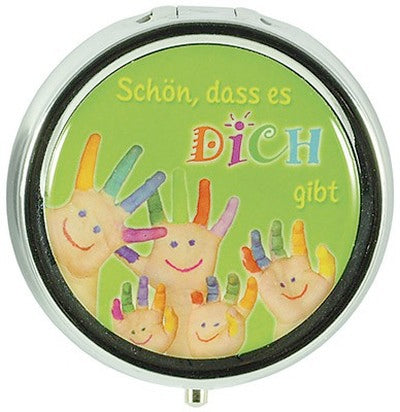 Schön, dass es dich gibt (Pillendose Höhe 1.8 cm - Durchmesser 8 cm)