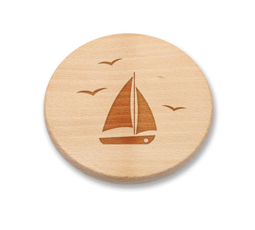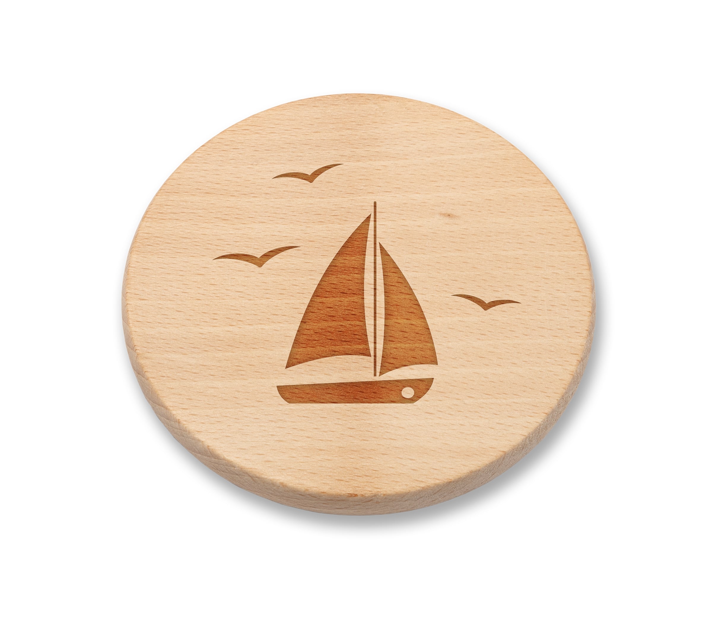 Die Gläseruntersetzer aus Buchenholz mit Gravur machen auf jedem Tisch eine gute Figur und verhindern dazu noch Ränder und Flecken auf dem Tisch oder der Tischdecke. Durchmesser 9 cm, Höhe 0,9 cm.