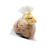 Fertig verpackt wird das Schäfchen in einem Organzabeutel mit liebevoll gestaltetem Schmuckkärtchen mit dem Aufdruck: "Mein Schaf Flocke" und "Sei behütet - Gott liebt dich so wie du bist"