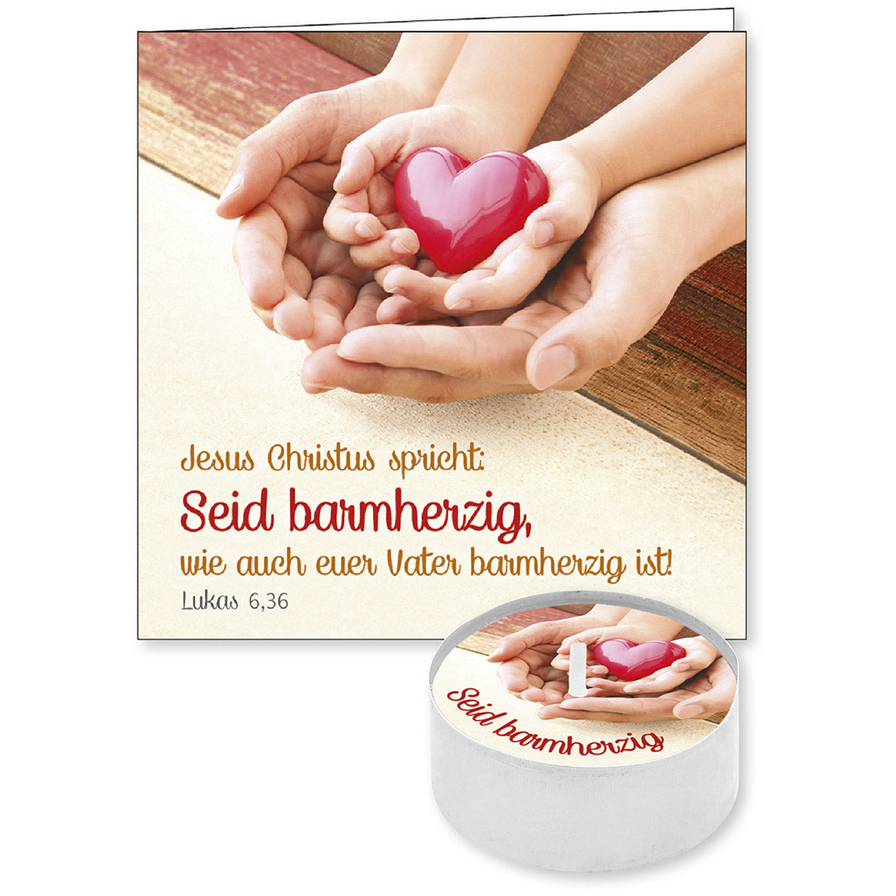 Seid barmherzig, wie auch euer Vater ... - Motiv Hände mit Herz (Lichtgruß)