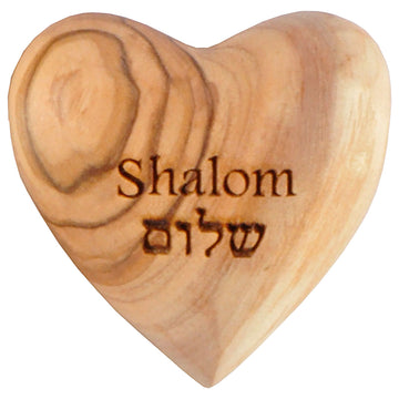 Handwerkskunst aus Bethlehem. Olivenholzherz, zweisprachig mit Laser beschriftet (Deutsch-Hebräisch).