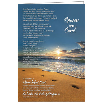 Und jedes Mal sah ich zwei Fußspuren im Sand, meine eigene und die meines Herrn.