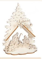 Aus acht Einzelteilen, gelasert aus naturbelassenem Holz, entsteht mit wenigen Handgriffen eine schöne Krippenszene zum Aufstellen.