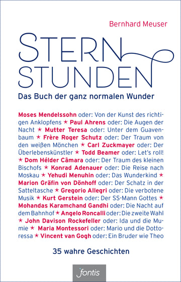Was hat eine junge Frau, die wie durch ein Wunder einen Fallschirmabsprung überlebt, mit Maria Montessori, der genialen Pädagogin, gemeinsam? Was verbindet John Rockefeller mit dem 13-jährigen Yehudi Menuhin? - Nichts. Oder doch dies: Dass sie alle ein wirkliches Wunder erlebt haben. Eine unerhörte Wendung der Dinge. Etwas, das ihr Leben auf den Kopf stellte, sie zu einem anderen Menschen machte. Bernhard Meuser hat über Jahre hinweg die wunderbaren Geschichten aus der Wirklichkeit gesammelt und veröffentlicht sie nun hier.