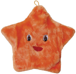 Eine kleine Wärmflasche umhüllt von einem Plüschstern in fröhlichen Gute-Nacht-Farben. Durchmesser 35 cm.