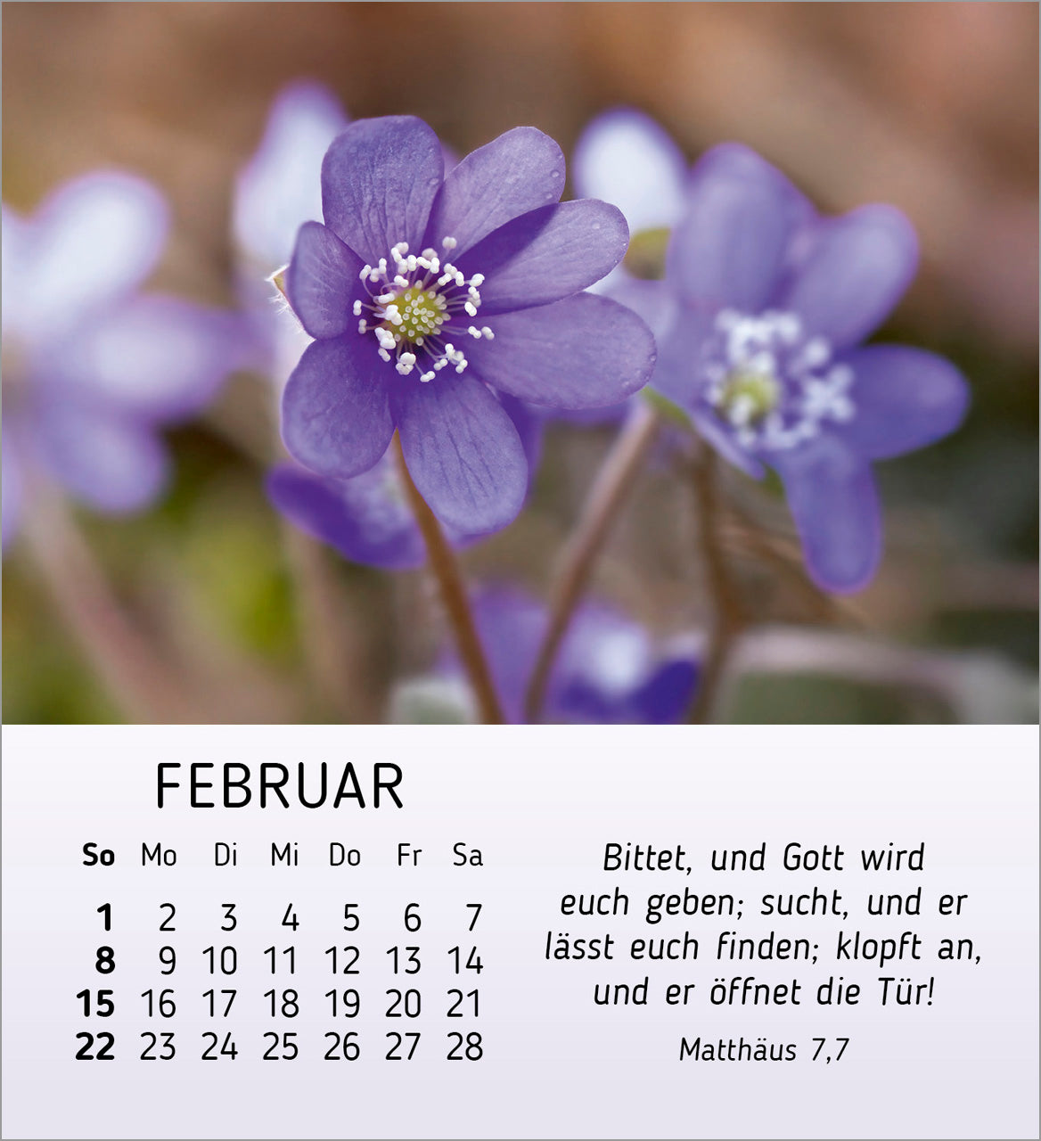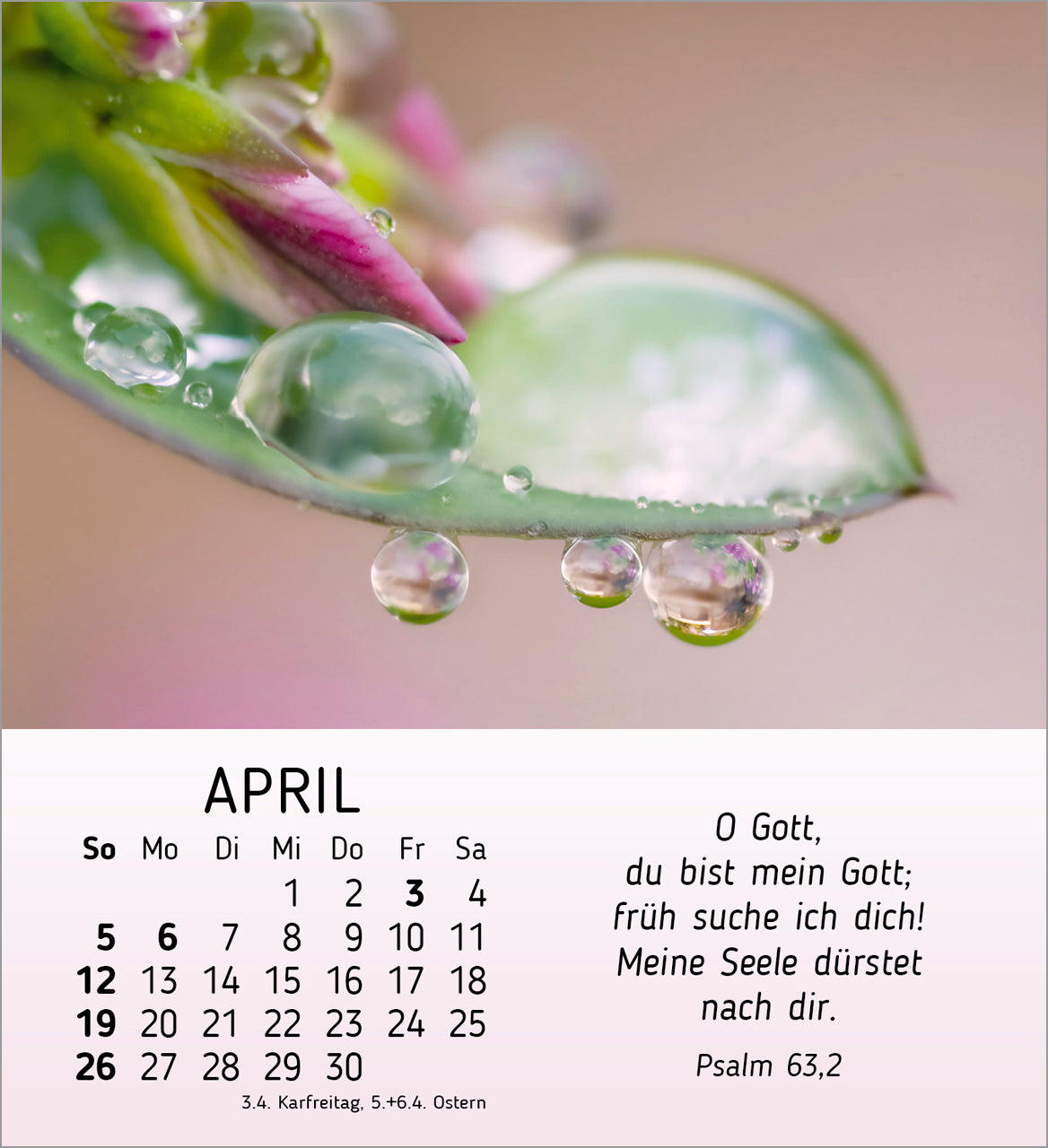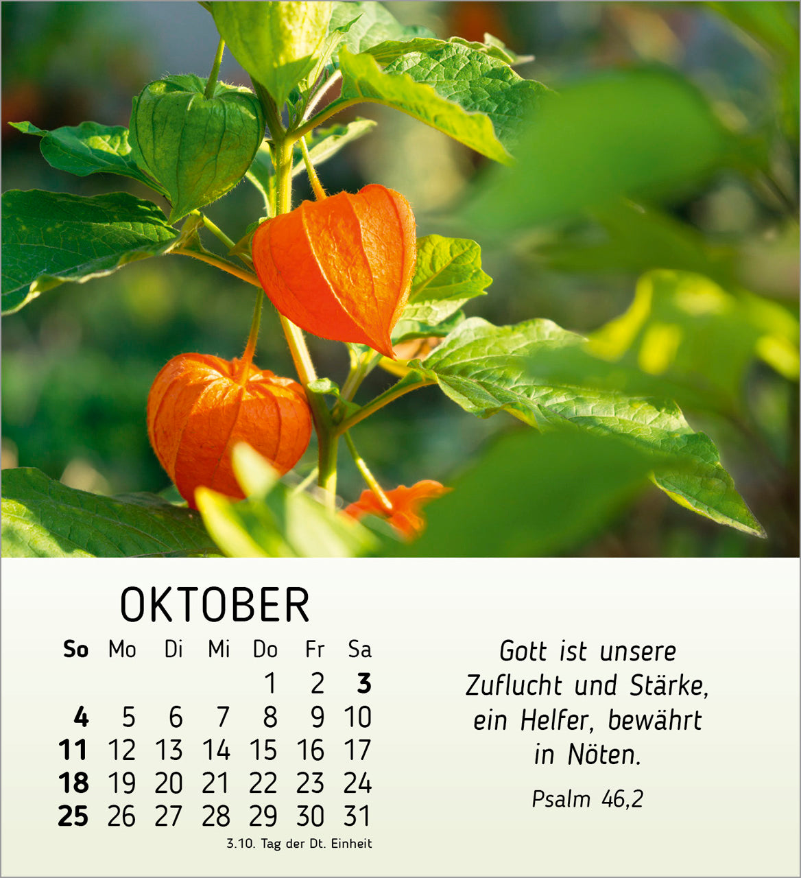 Ausgesprochen schöne Naturaufnahmen mit passenden Psalmworten machen diesen Kalender zu einem netten kleinen Geschenk.