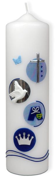 Farbe Blau, Motiv: Kreuz, Taube, Hose und Krone, Höhe 22 cm, 6 cm, im Einzelkarton
