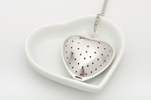Hübsches Teesieb mit Porzellanschale in Herzform
