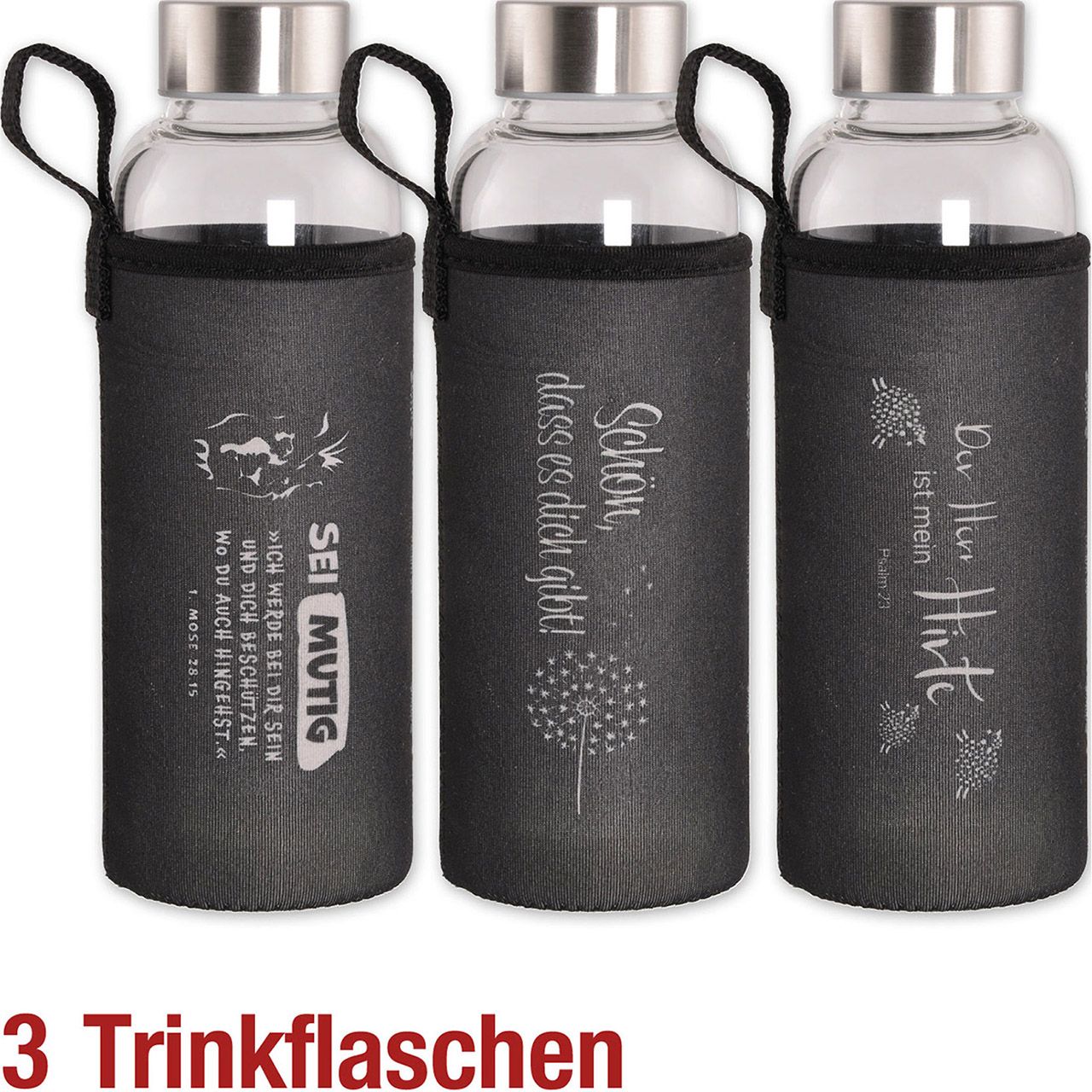Borosilikatglas mit Edelstahlverschluss, geeignet für sehr heiße und kalte Getränke.