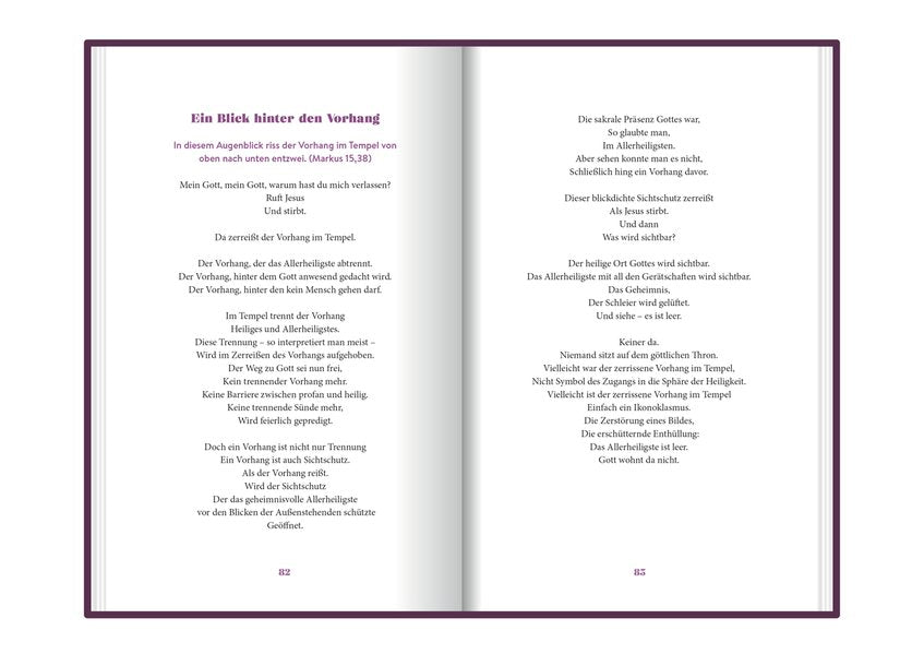 Dort, wo oft Sprachlosigkeit herrscht oder religiöse Formeln mechanisch wiederholt werden, wagt dieses Buch etwas Neues: Es spricht vom Leiden und der Hoffnung, vom Tod und vom Leben mit einer Stimme, die suchend, fragend, und dennoch voller Tiefe ist. Die Texte folgen dem dramatischen Spannungsbogen der Passionsgeschichte und deuten das Geschehen um Jesu Sterben und Auferstehung auf persönliche, herausfordernde und bewegende Weise.
