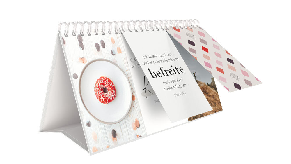 Der beliebte Dreiklang-Tischkalender zum Selberzusammenstellen kommt in neuem Gewand zurück: als umfangreiches Aufstellbuch. Neben der bunten Mischung aus trendigen Bildmotiven, die frei kombinierbar sind, enthält es auch 29 ermutigende Bibelverse.