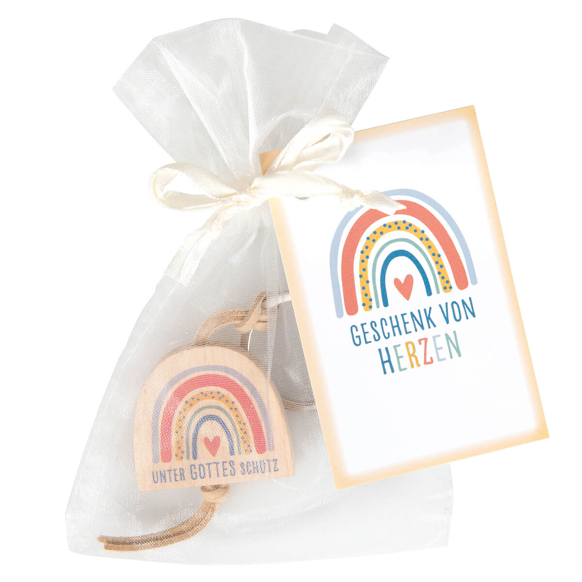 Unter Gottes Schutz - Schlüsselanhänger Regenbogen (Holz)