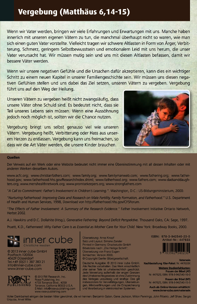 einen Abschnitt zum Thema Vergebung - gerade für Männer, deren eigene Väter ihre Rolle nicht ausgefüllt und ihre Verantwortung nicht in guter Weise wahrgenommen haben