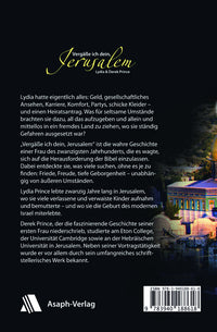 Vergäße ich dein, Jerusalem ist die wahre Geschichte einer Frau des zwanzigsten Jahrhunderts, die es wagte, sich auf die Herausforderung der Bibel einzulassen und die dabei entdeckte, was viele suchen, ohne es je zu finden: Friede, Freude, tiefe Geborgenheit, egal, wie die äußeren Umstände auch sein mochten.