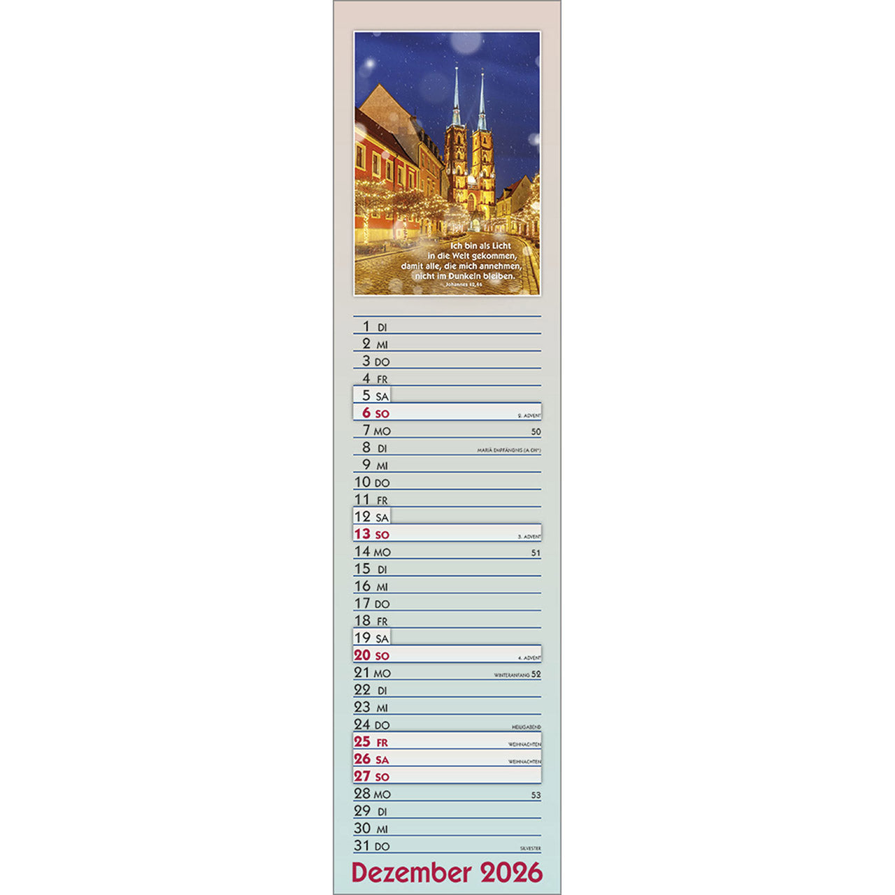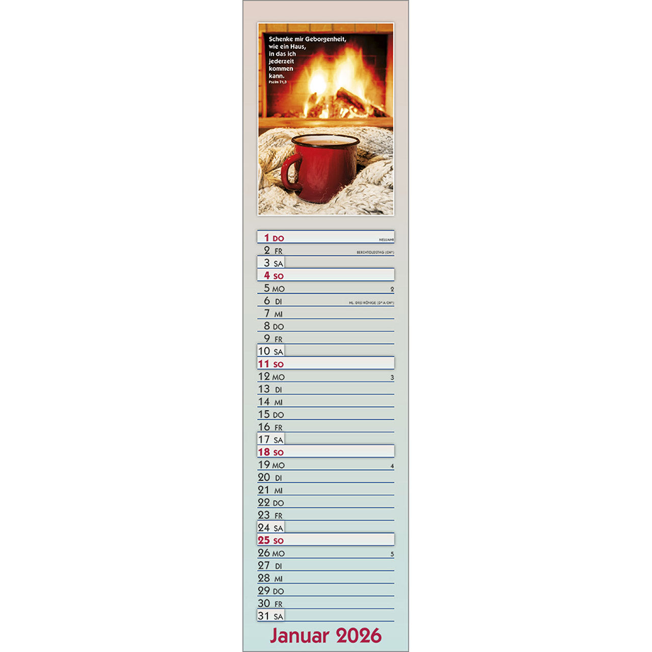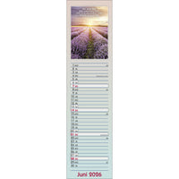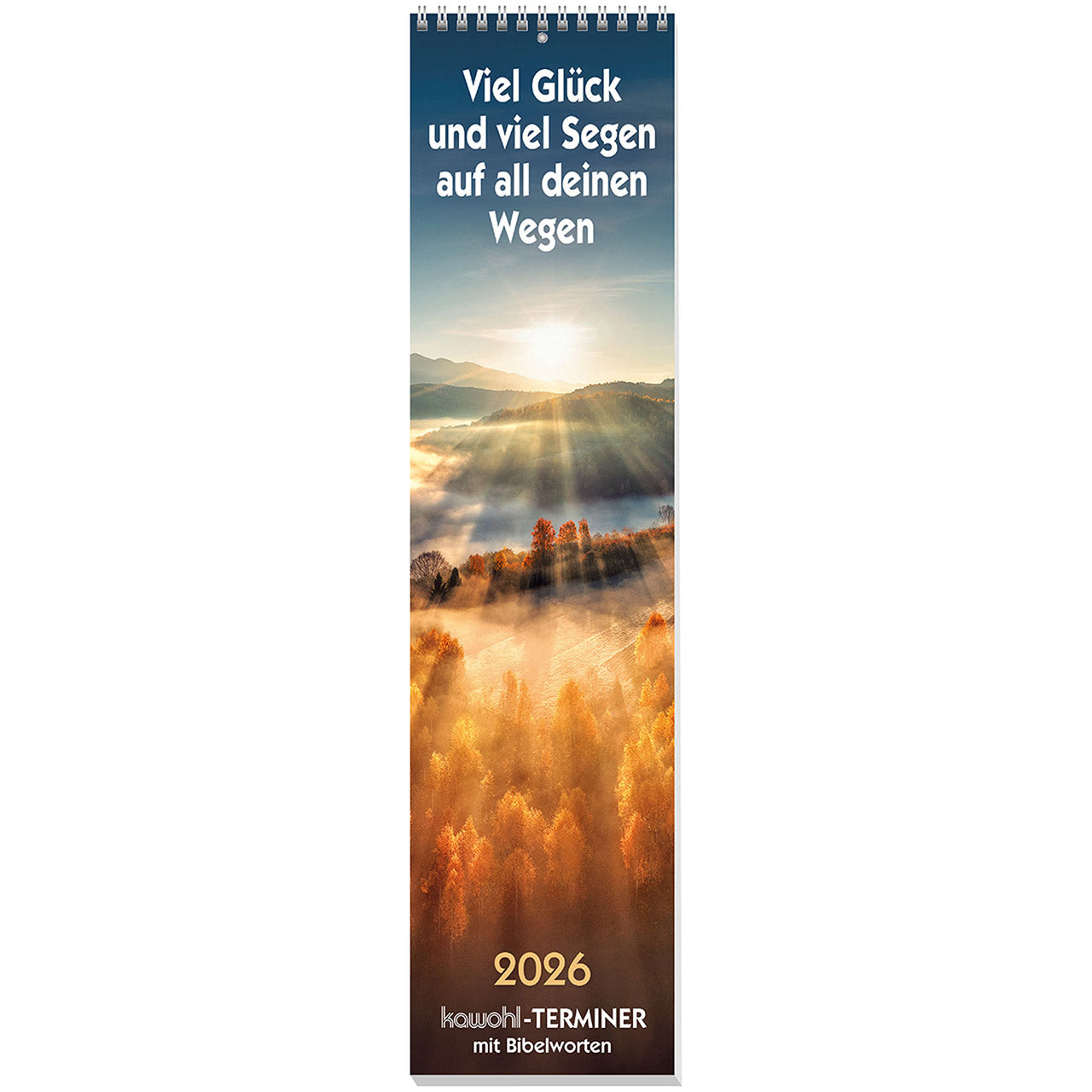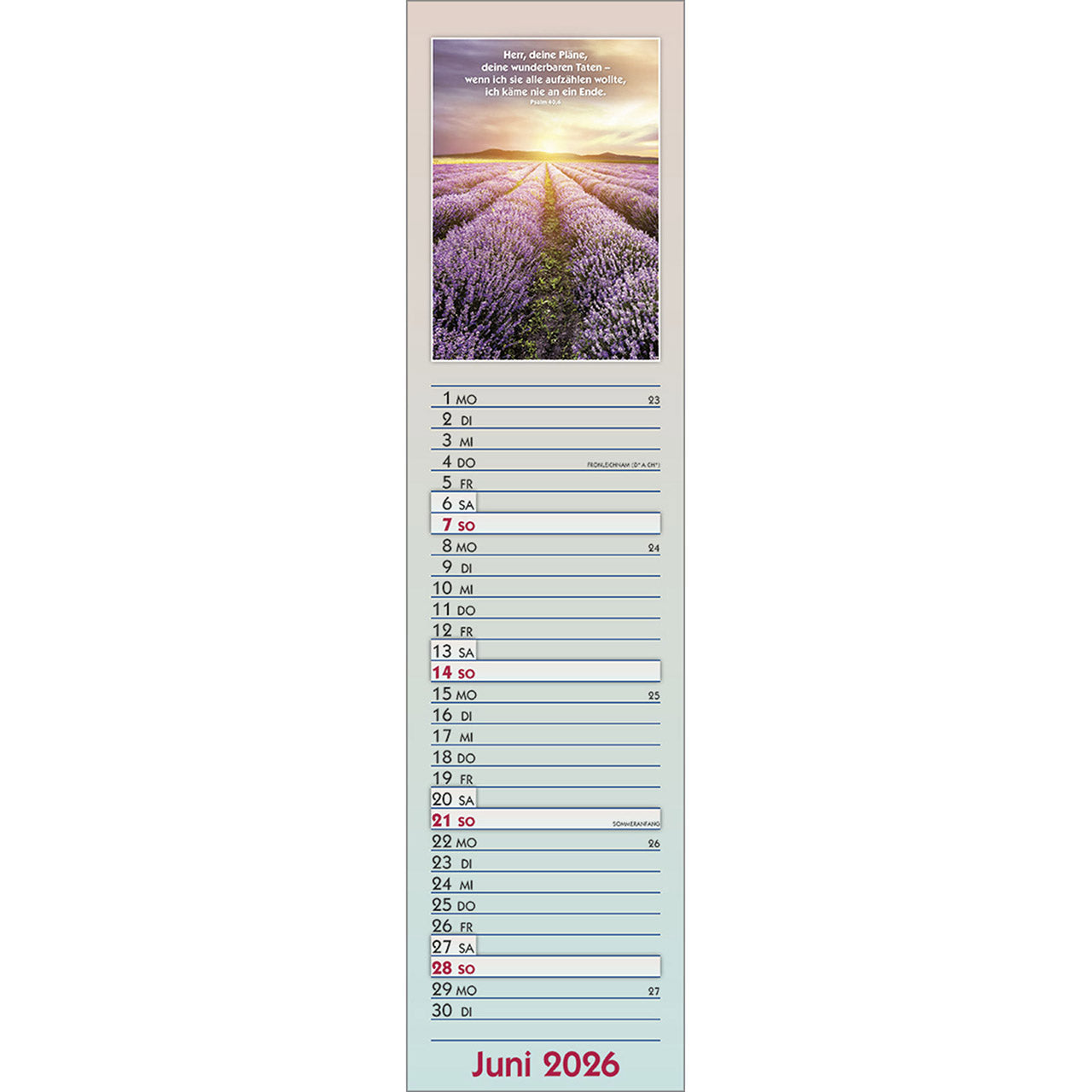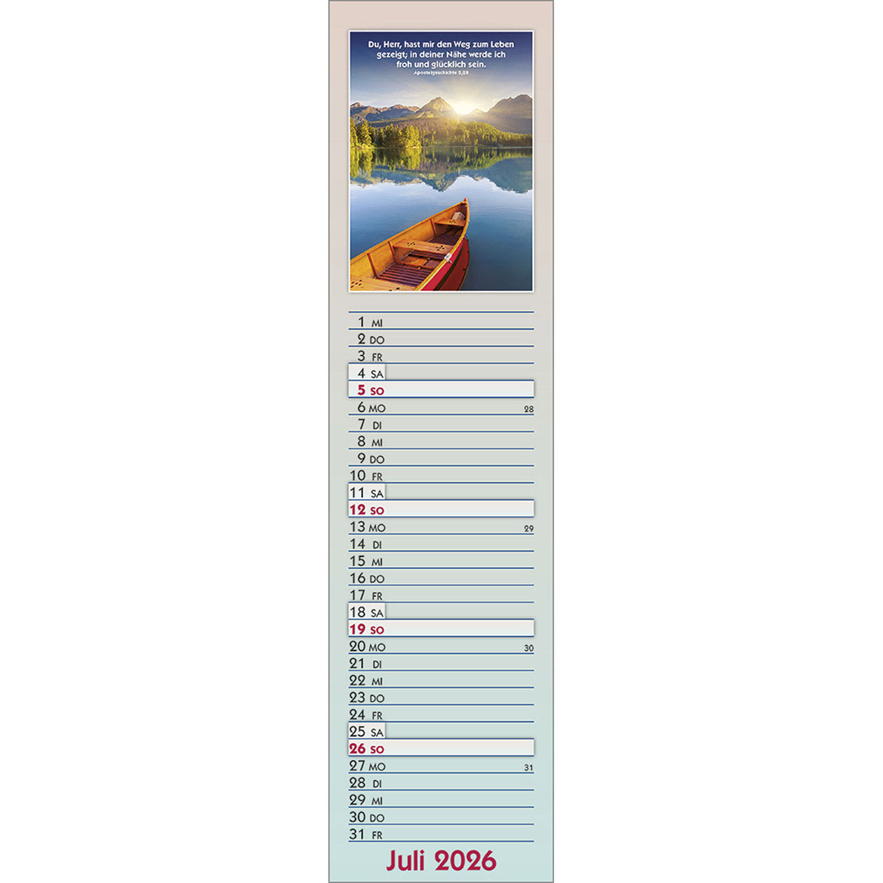 Ein übersichtlicher Streifen-Terminer, mit abwechslungsreichen Farbfotos und wegweisenden Bibelworten.