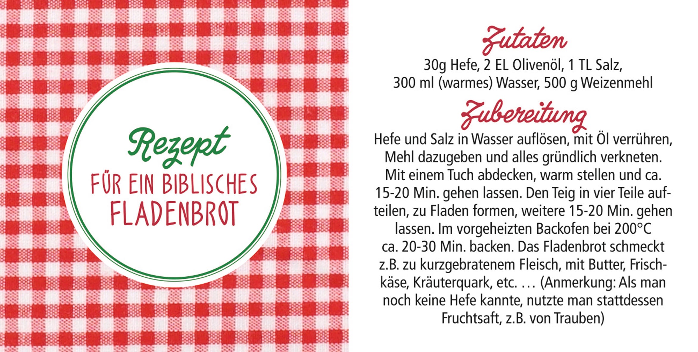 an wen der Kochlöffel verschenkt wird; Kärtchen enthält Rezept für ein biblisches Fladenbrot.