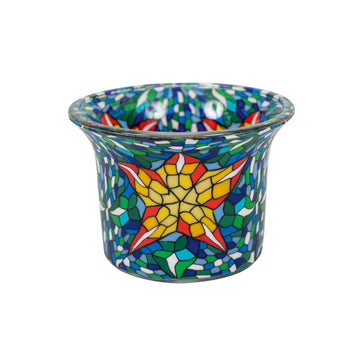 Das Teelichtglas Stern im Kirchenfenster Design schafft eine heimelige Atmosphäre an dunklen Wintertagen.
