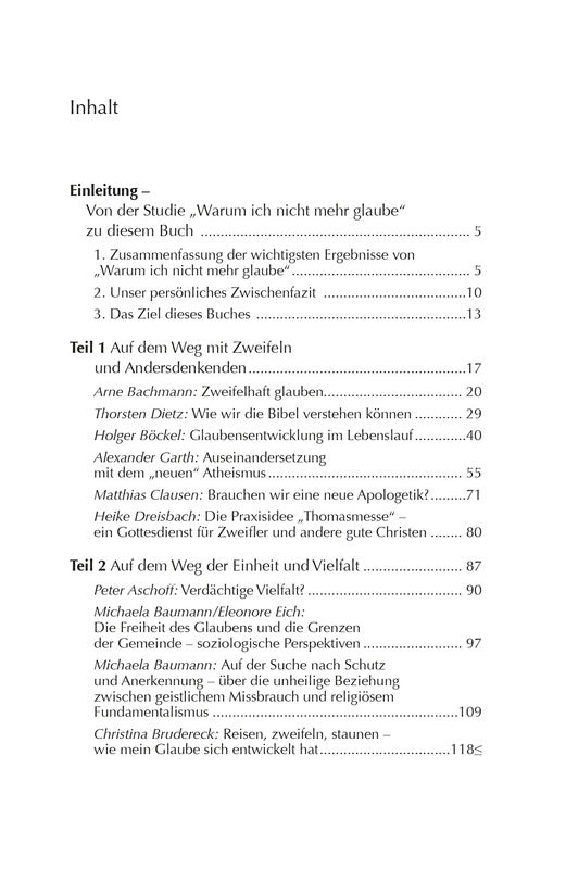 Das Vorgängerbuch "Warum ich nicht mehr glaube" hat zahlreiche Menschen ins Nachdenken und ins Gespräch miteinander gebracht. Viele Christen haben sich erstmals intensiv damit beschäftigt, warum junge Erwachsene den Glauben verlieren. Fast immer kam dabei die Frage auf: "Wie kann man das verhindern?" Das nun vorliegende Buch vertieft und erweitert die gewonnenen Erkenntnisse. Expertinnen und Experten wie Christina Brudereck, Alexander Garth oder Andreas Malessa denken in kurzen Beiträgen über die vier Themenbereiche "Zweifel & Identität" , "Offenheit & Vielfalt" , "Macht & Missbrauch" sowie "Mündigen Glauben stärken und fördern" nach und damit auch darüber, wie man zu einer Kultur des verantwortlichen Glaubens findet.