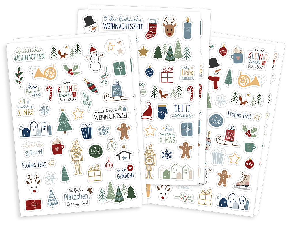 Sticker-Set zur Weihnachtszeit. Einfach schön - für persönliche Geschenke und Weihnachtsgrußkarten oder kreative Kalender- und Notizbucheinträge.