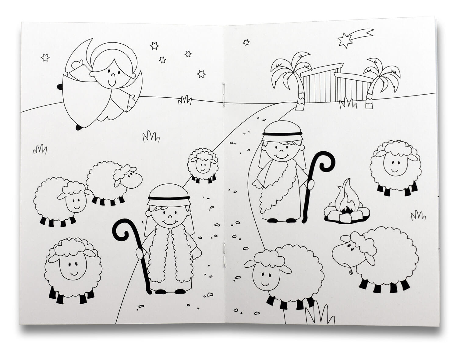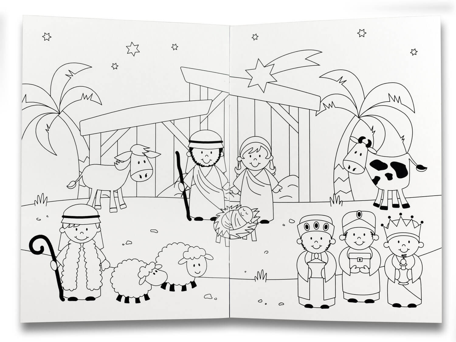 Malheft im DIN A6-Format (10,5x14,8 cm), 12 Seiten, mit kindgerechten Illustrationen zur Weihnachtsgeschichte zum Ausmalen, (Vor-)lesen und Entdecken