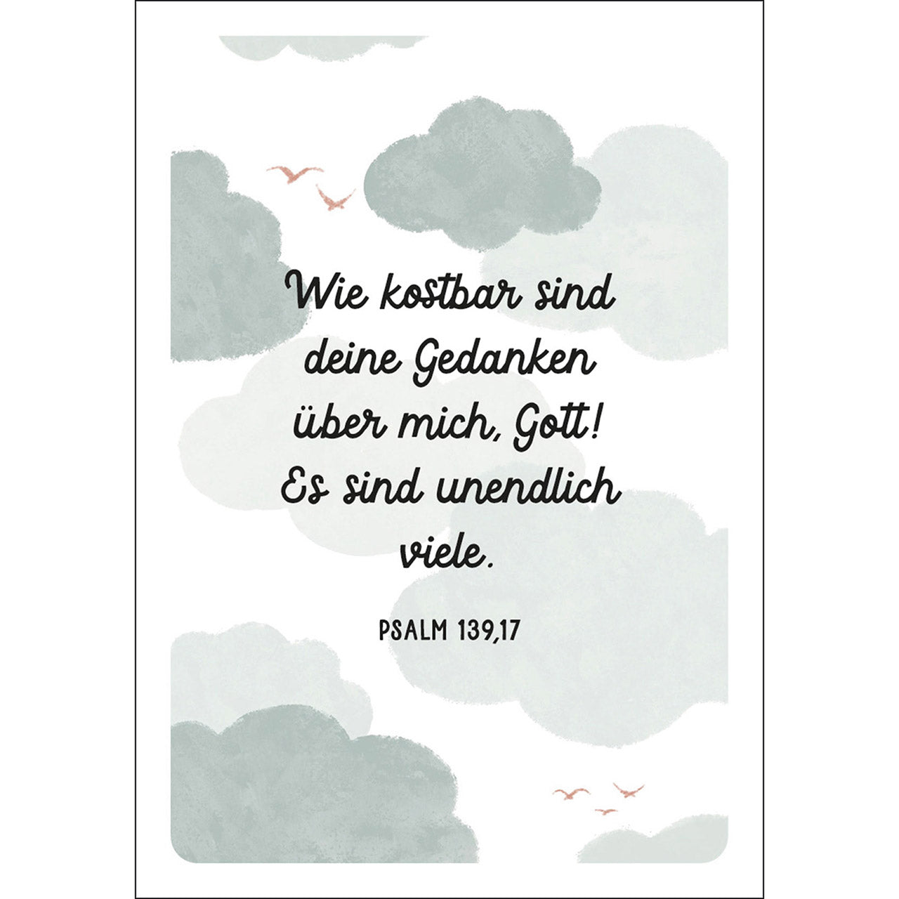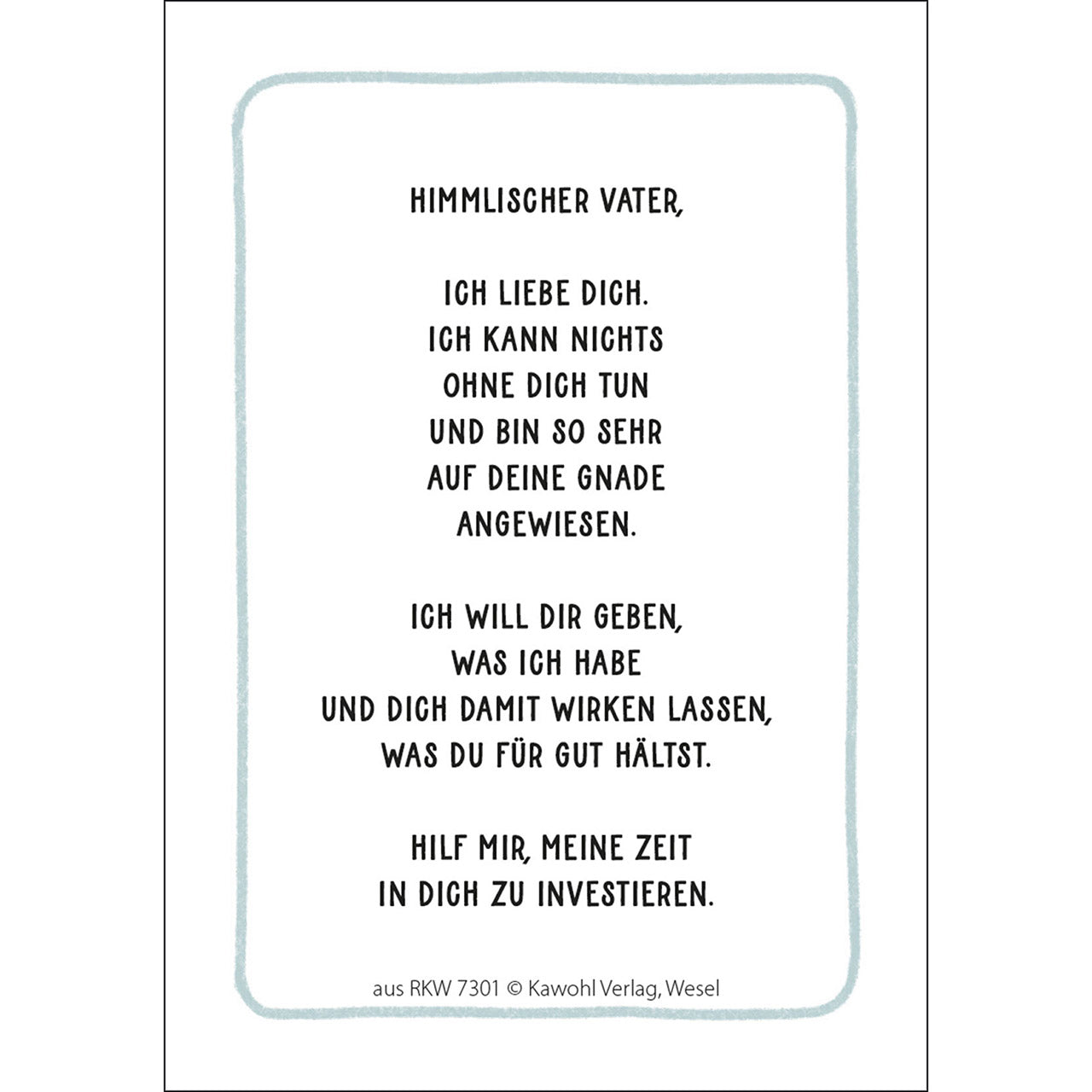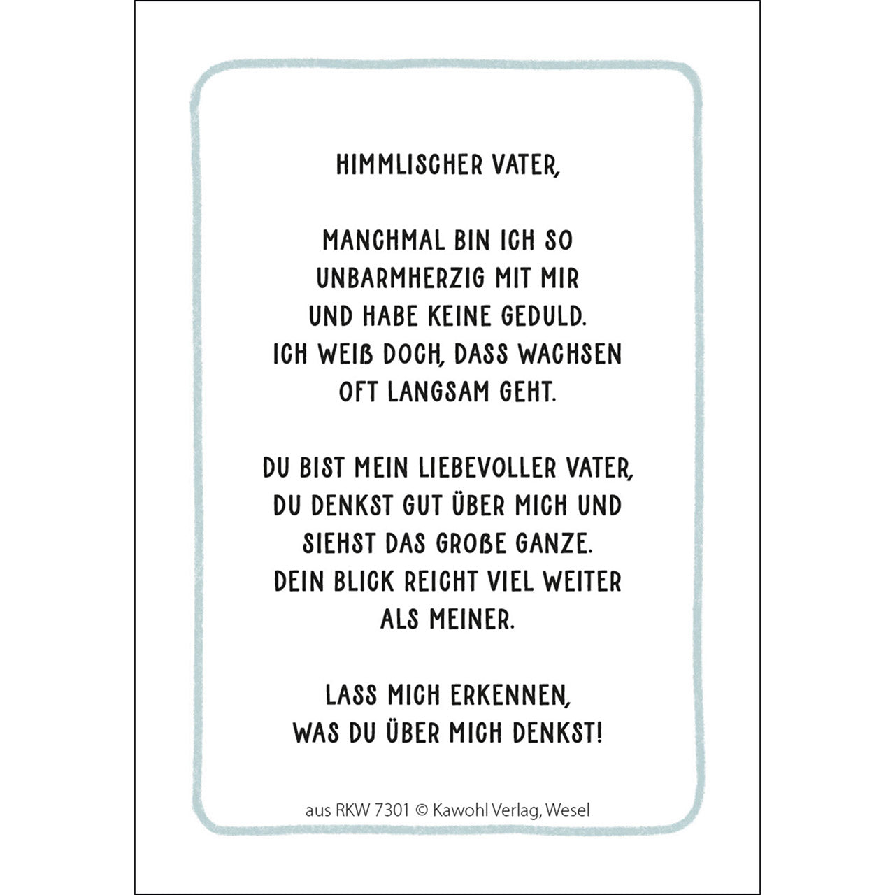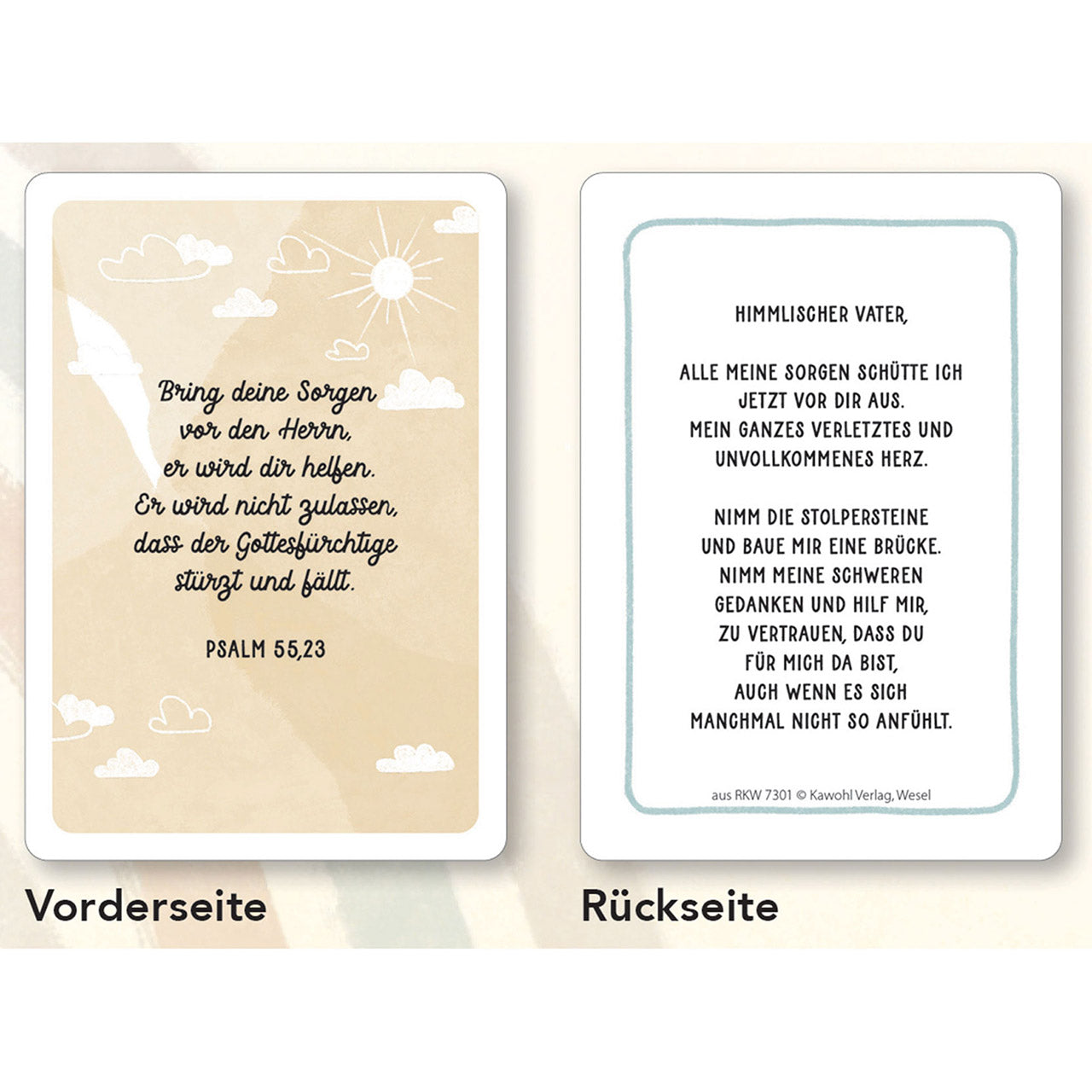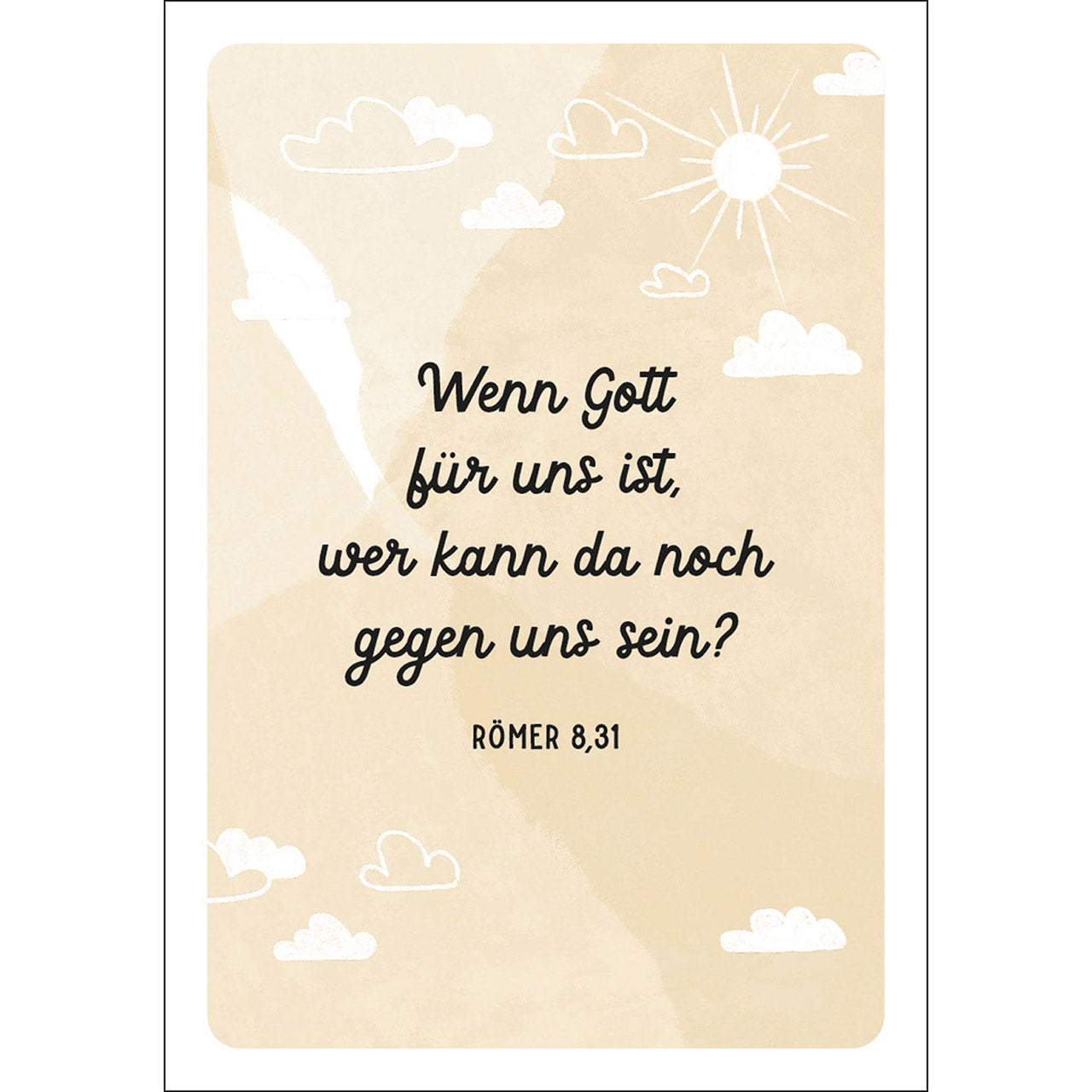 Mindestens 52 mal ermutigen diese Karten - gestaltet von Catharina Neideck - durch Bibelverse, neuen Mut zu finden, Kraft zu tanken und sich bewusst darüber zu werden, wie Gott uns liebt und trägt. Ein Bibelvers spricht jeweils direkt in die Seele. Und auf der Rückseite lädt ein Gebet ein, auf Gottes Wort zu antworten und die Ermutigung zu verinnerlichen.