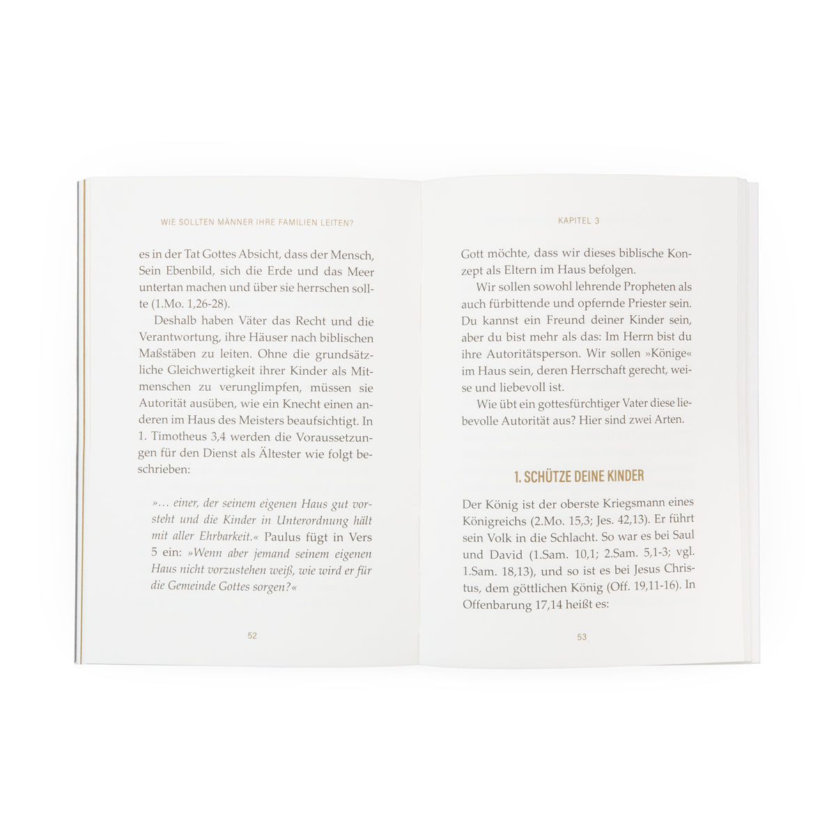 Gefüllt mit biblischer Weisheit und praktischer Anwendung, ist dieses Büchlein ein hilfreicher Leitfaden für Männer, die das Bild Christi und das des himmlischen Vaters tragen und demgemäß leben wollen, indem sie ihre Frauen und Kinder leiten, lehren, lieben, evangelisieren und beschützen.