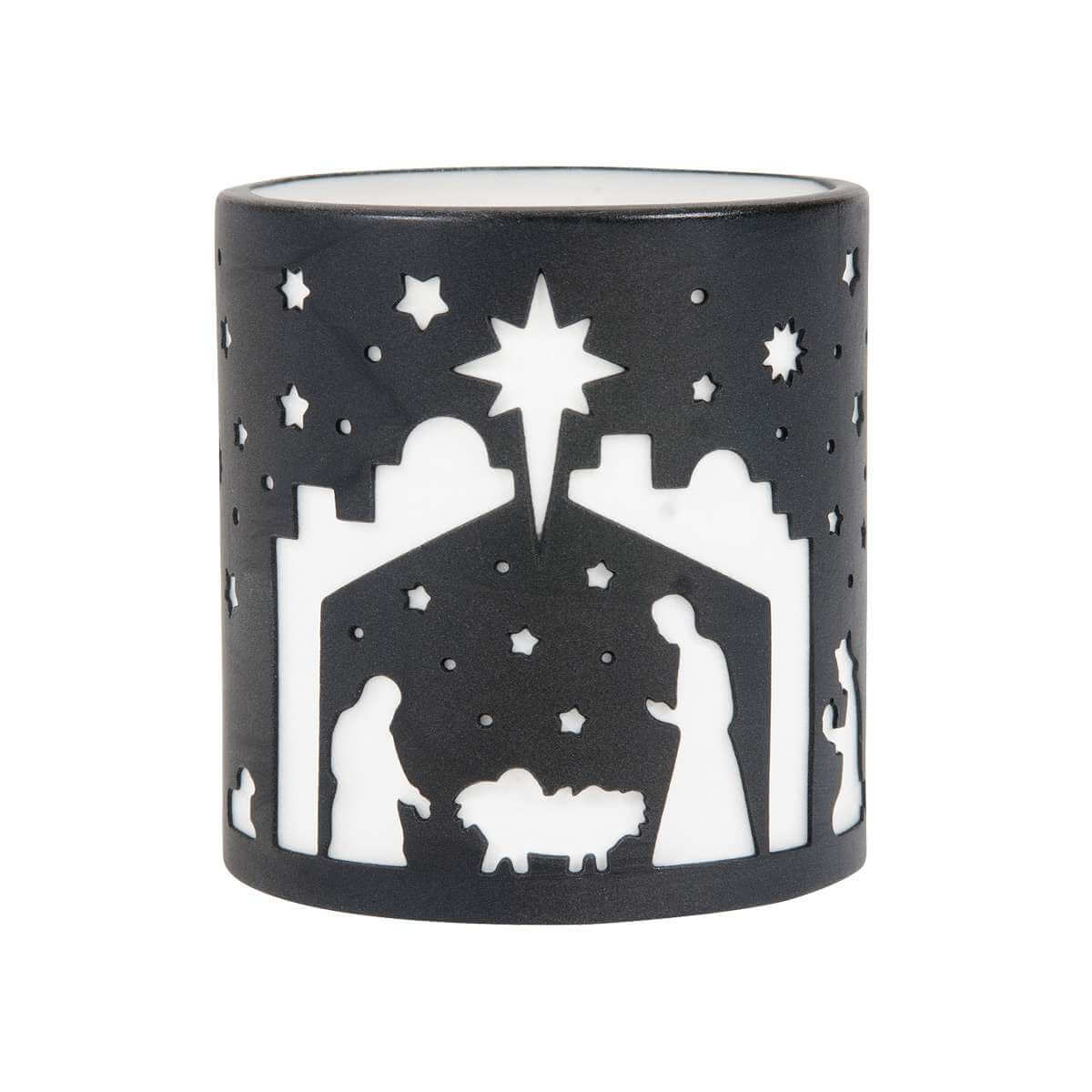 Außergewöhnliches Windlicht Krippe aus Porzellan.