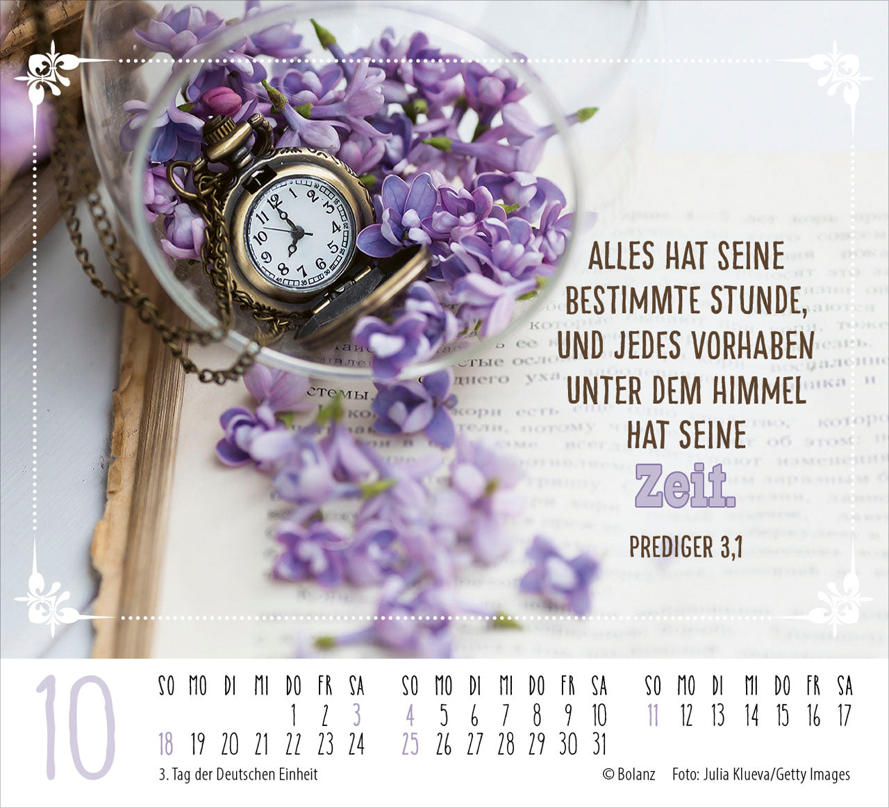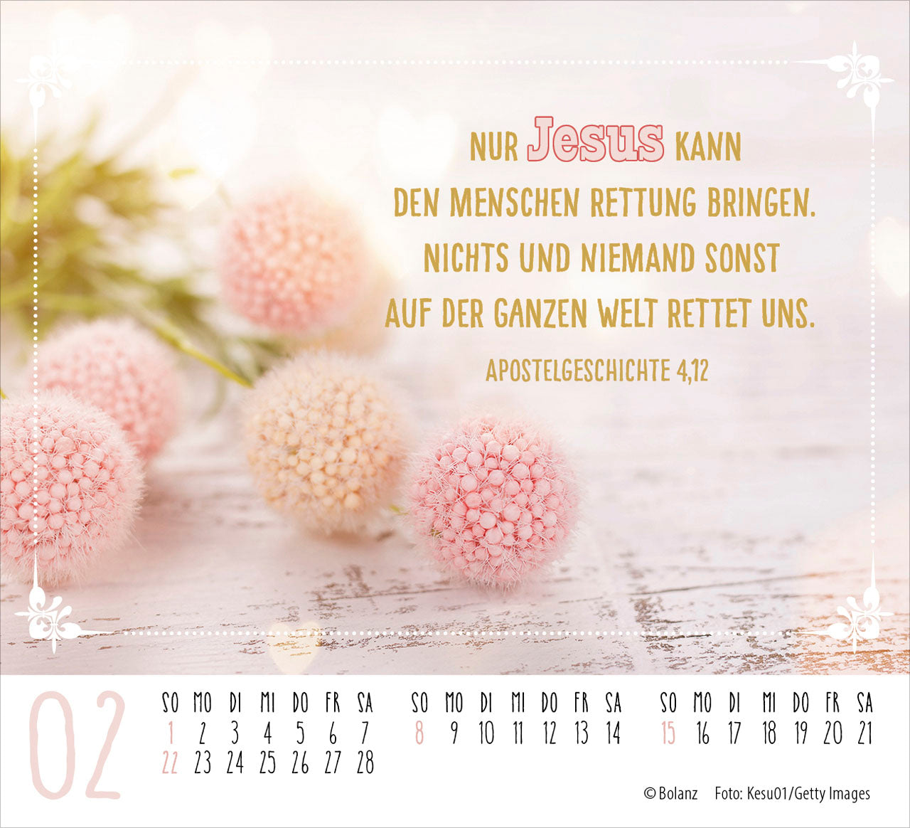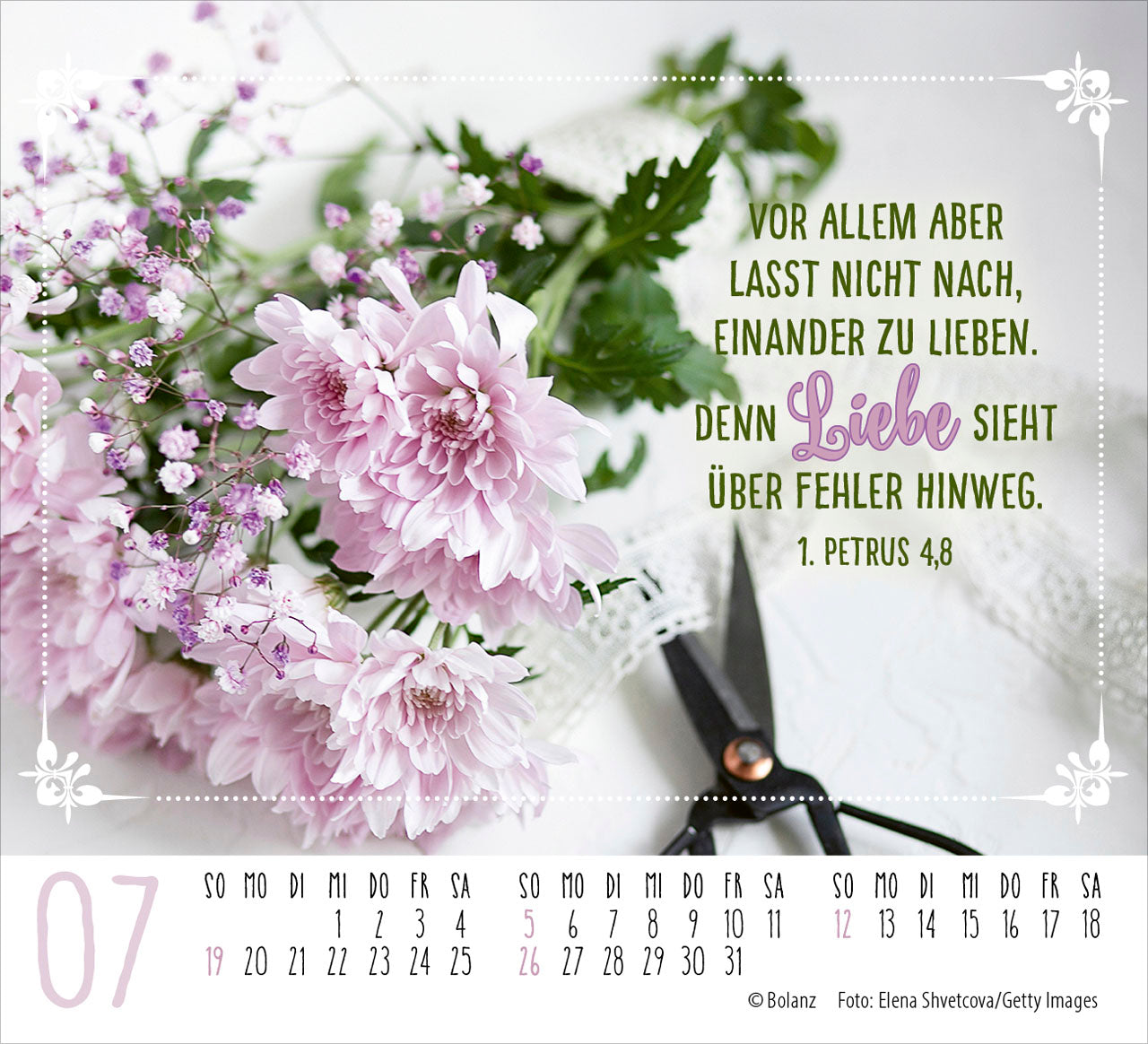 Wie gut tut es uns doch, wenn wir ein liebevolles Wort von anderen Menschen erhalten. Mit unserem Minikalender mit charmanten Fotografien im Vintagestil und wertschätzenden Bibelworten und Zitaten werden wir immer wieder daran erinnert, wie wichtig das ist. Klein, praktisch und schön. Ein ideales Geschenk oder Mitbringsel.