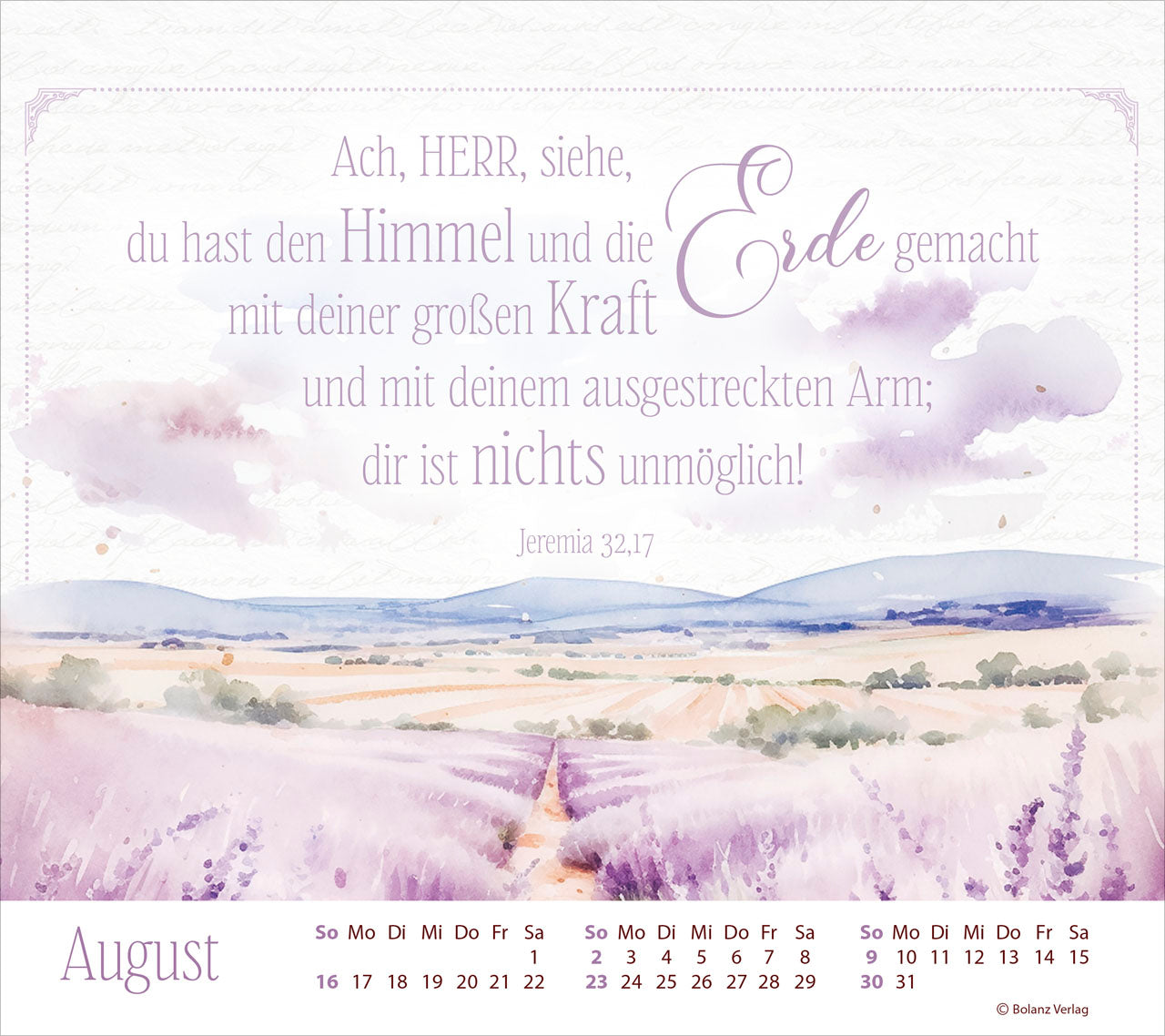 Worte sind nicht leer! Die poetischen Gedanken aus der Bibel in diesem Kalender treffen, ermutigen und begleiten Sie in ihrer positiven Gestaltung durchs ganze Jahr.