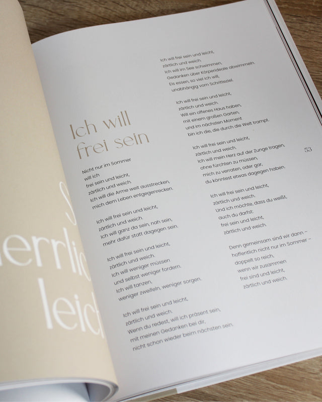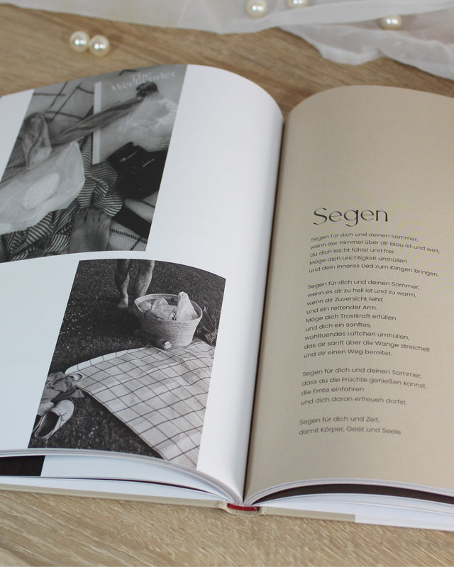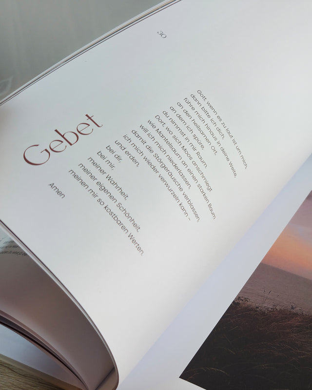 "Ein Sonnenstrahl, der sich früh am Morgen sanft auf die Bettdecke legt. Dieses eine Wort, das das Herz berührt. Schönheit tut der Seele gut! Und so haben wir sie gesucht und gesammelt: Worte, Bilder, Gebete, die der Seele guttun, und manchmal bedeutet das, gerade im Schweren das Schöne aufzuspüren."