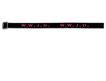 Gewebte, schwarze Armbänder mit Metallschnalle in bewährter Qualität, mit Text "W.W.J.D." in verschiedenen Neonfarben, Länge ca. 25 cm