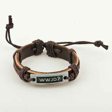 WWJD (Leder-Armband) Braun mit Metallplatte