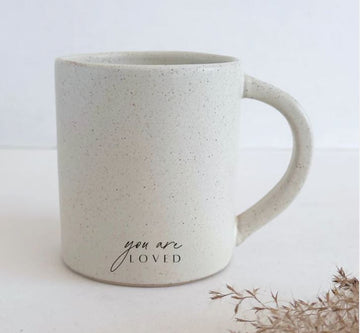 Diese liebevoll handgefertigte Steingut-Tasse mit reaktiver Sesamglasur und der Gravur "You are loved" erinnert an Gottes bedingungslose Liebe. Jeden Tag dürfen wir wissen: Wir sind wertvoll, angenommen und unendlich geliebt. Ein stilvoller Begleiter und eine tägliche Ermutigung, in dieser Liebe zu leben.