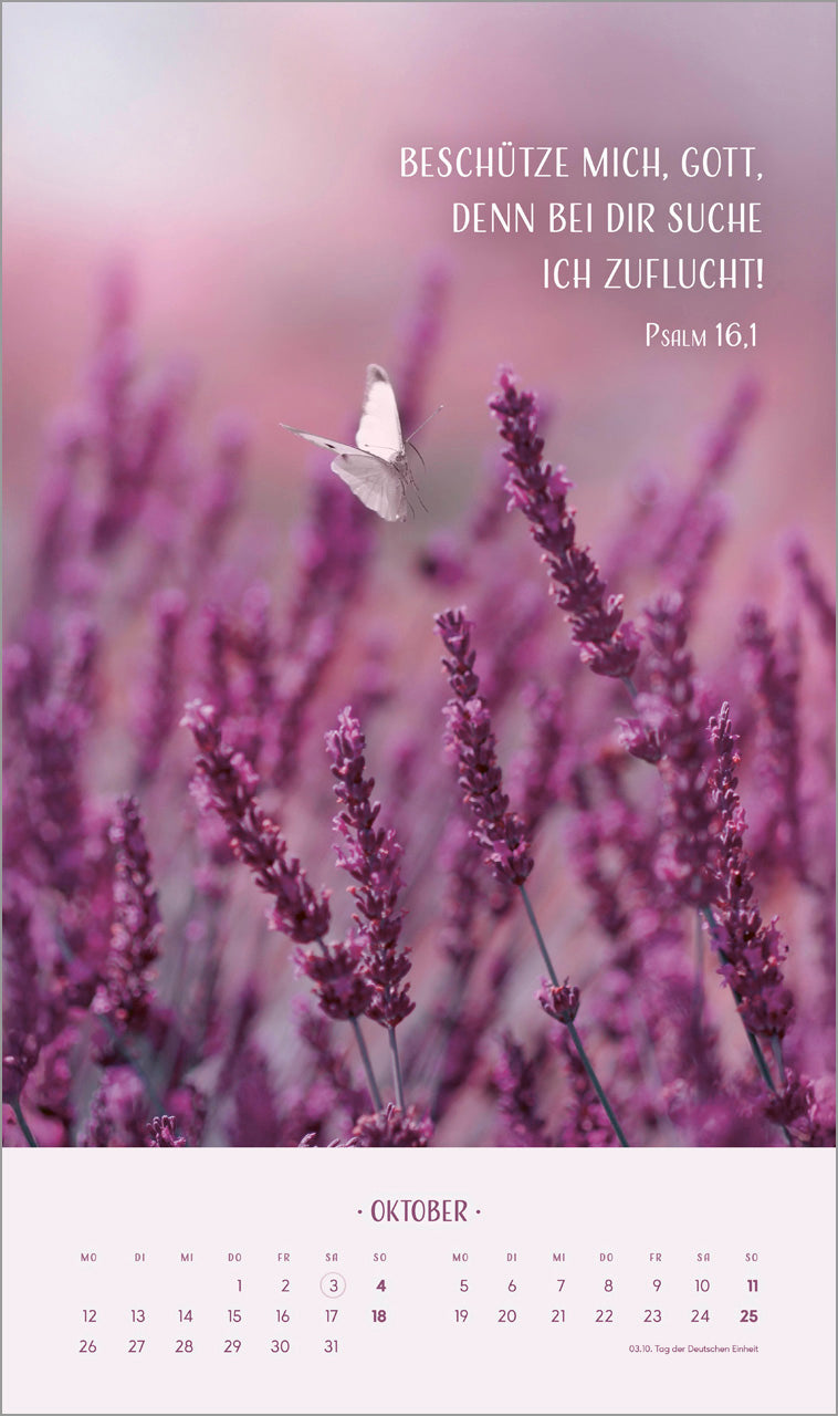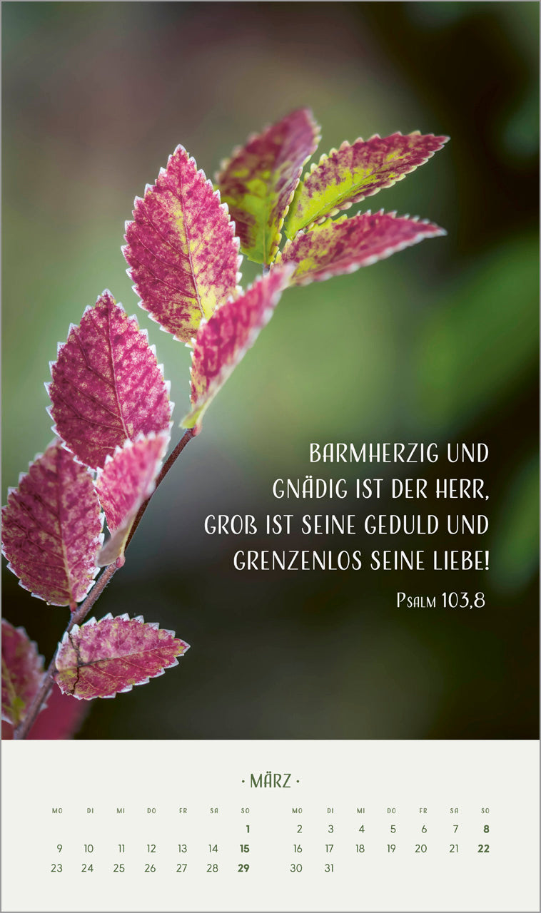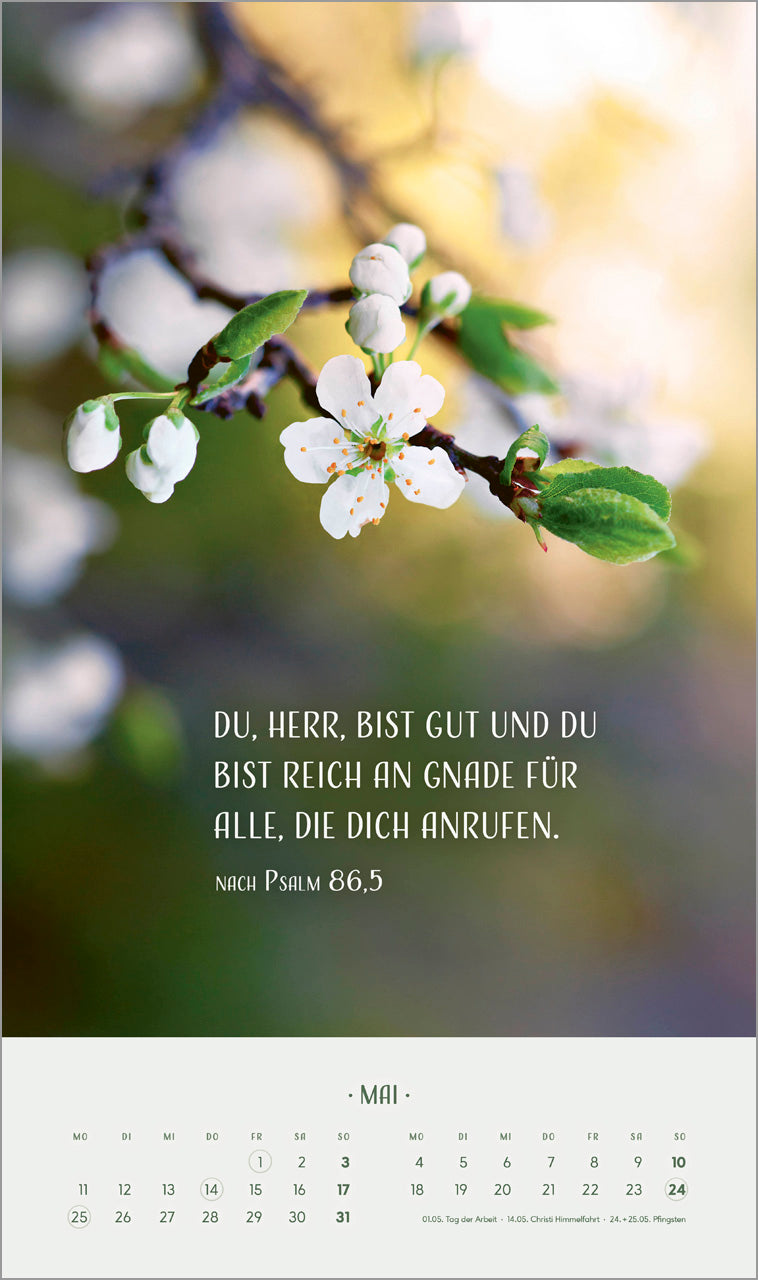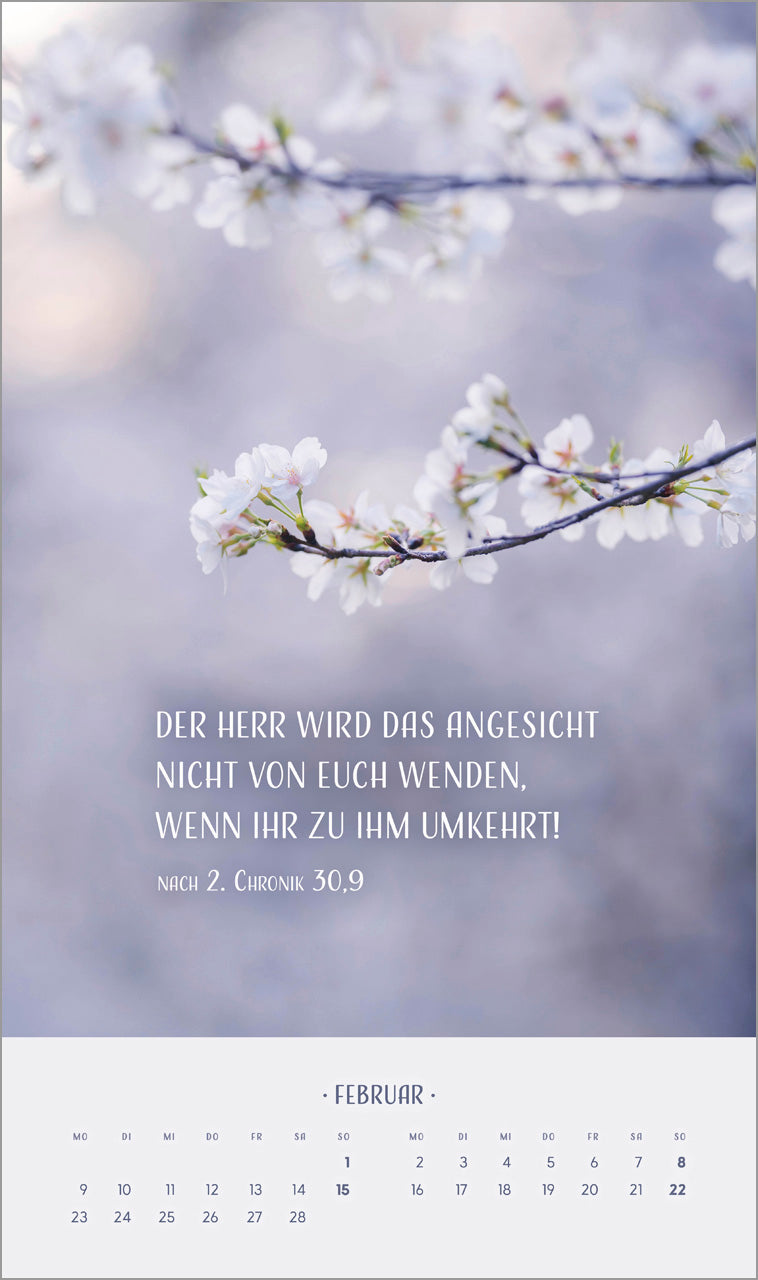 Blumenmotive in sanften Tönen prägen diesen Kalender. Auf kunstvolle Art ergänzen sich Bild und Text zu einer harmonischen Einheit.