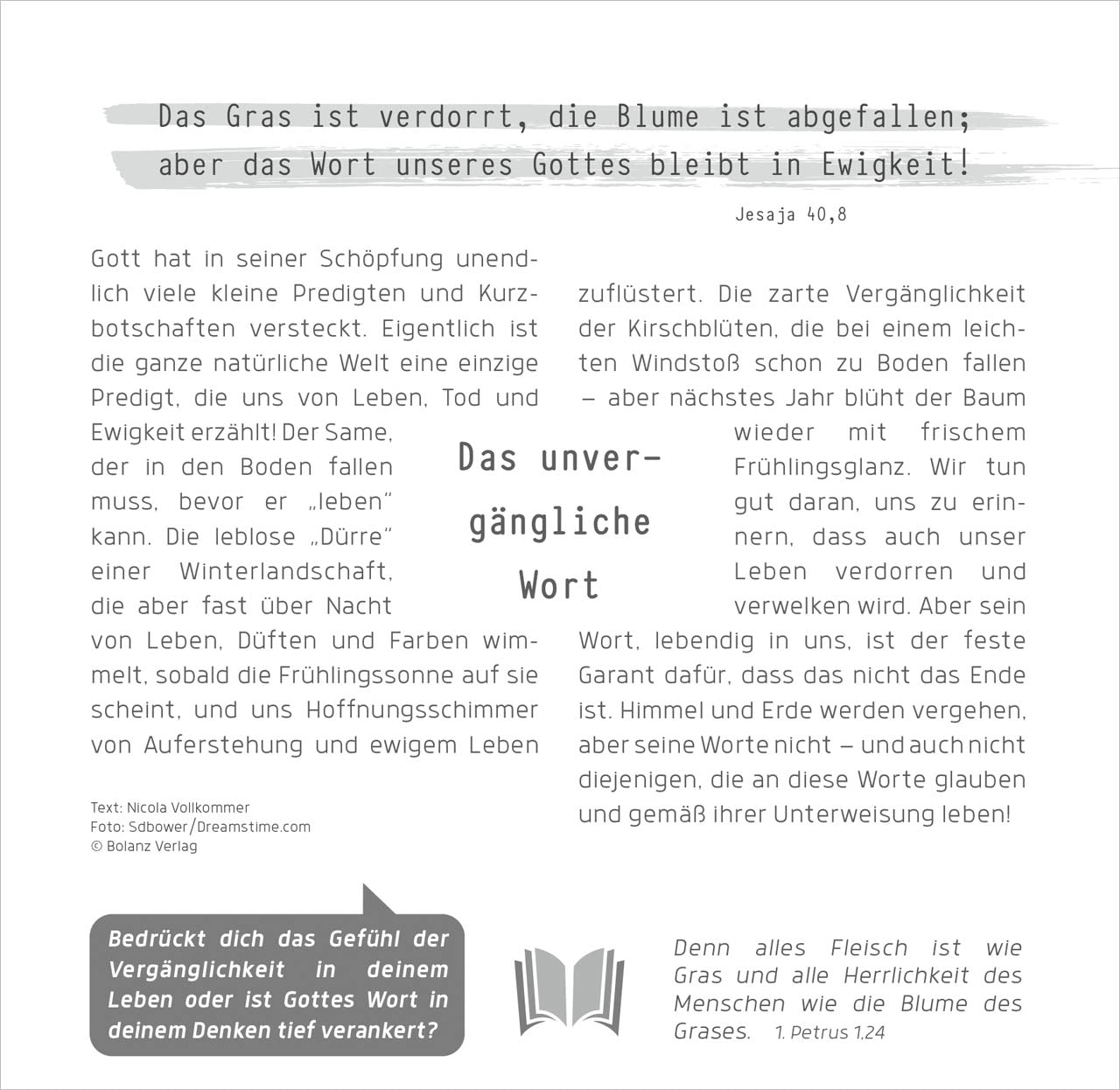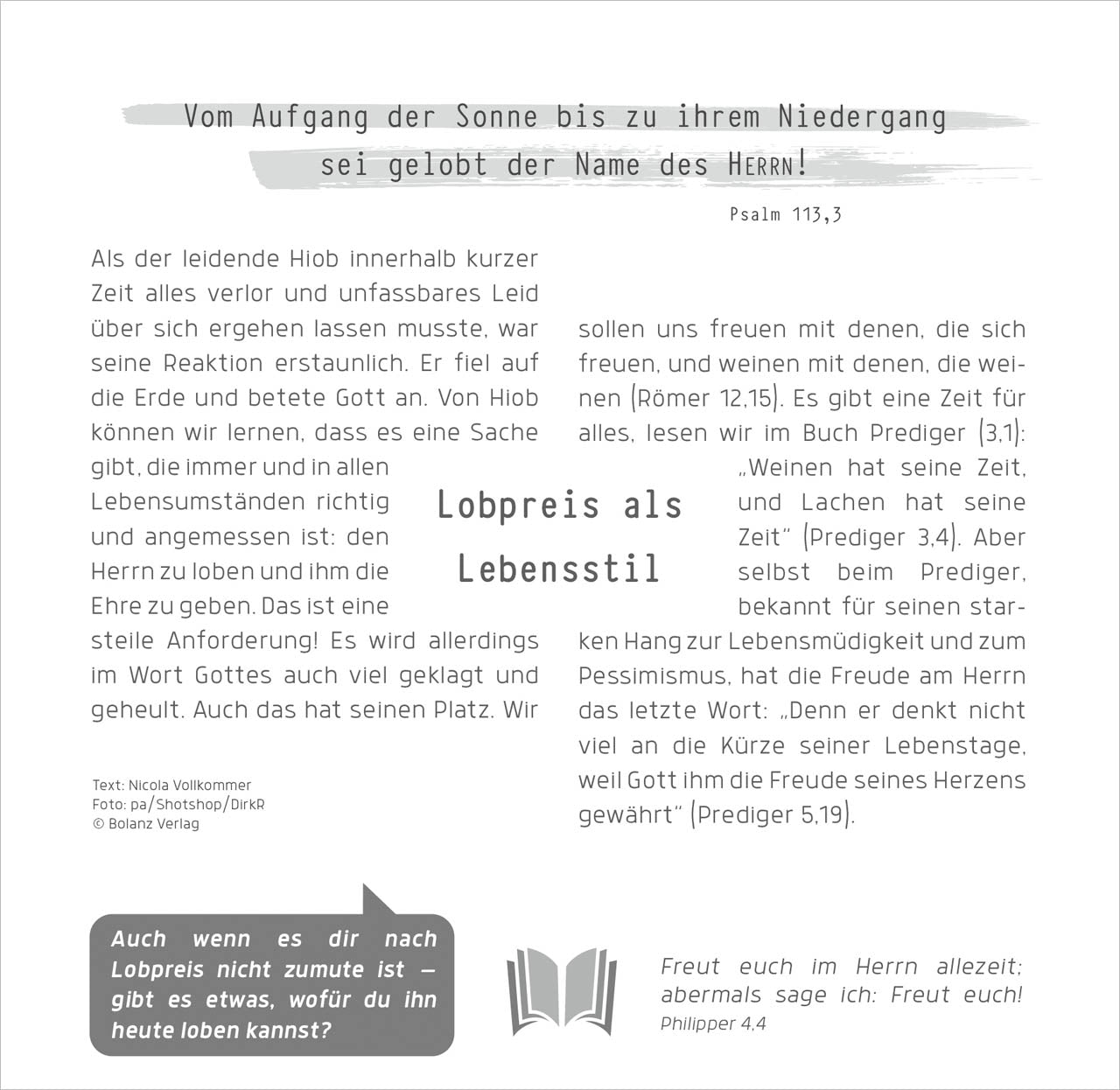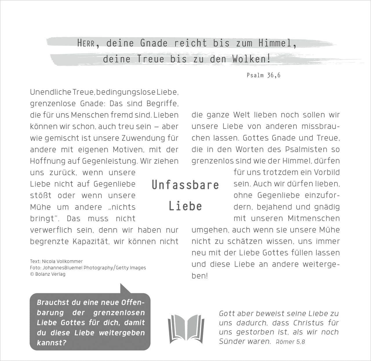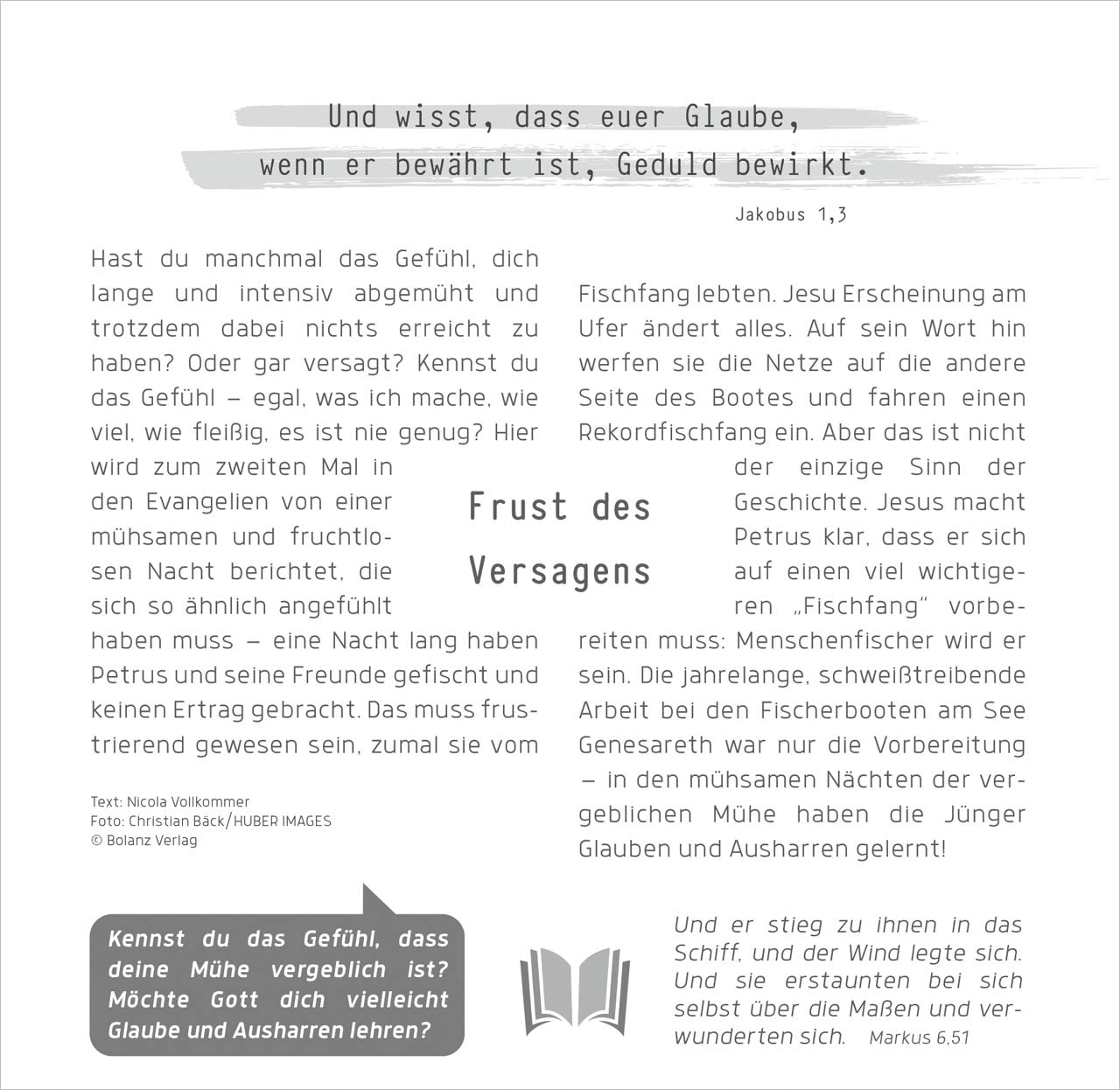 Die maritimen Motive dieses Kalenders entführen direkt in die faszinierende Welt von Meer und Strand. Sehnsuchtsbilder wecken die Lust auf das Meer und holen die raue Schönheit und den besonderen Charakter der Küste nach Hause. Die anregenden Texte von Nicola Vollkommer sind dazu eine inspirende Quelle des Glaubens.