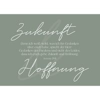 Text auf Vorder- und Rückseite:Zukunft & Hoffnung - Denn ich weiß wohl, was ich für Gedanken über euch habe, spricht der Herr: Gedanken des Friedens und nicht des Leides, dass ich euch gebe Zukunft und Hoffnung.