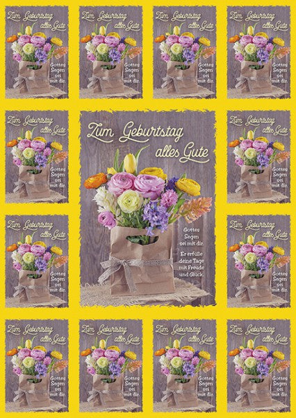 Zum Geburtstag alles Gute (12 Aufkleber-Karten)