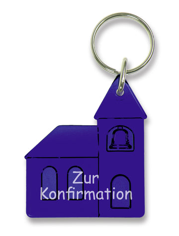 Zur Konfirmation - Schlüsselanhänger Kirche (lila)
