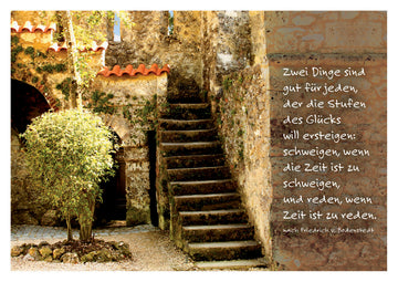 Zwei Dinge sind gut für jeden der die Stufen des Glücks will ersteigen: schweigen wenn Zeit ist zu schweigen und reden wenn Zeit ist zu reden. nach Friedrich v. Bodenstedt